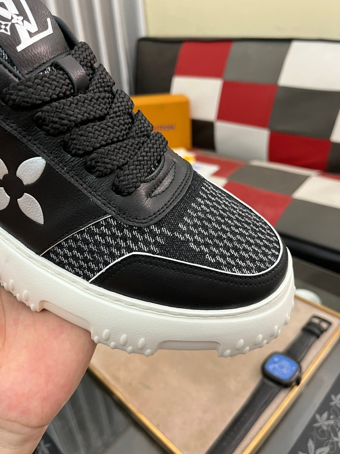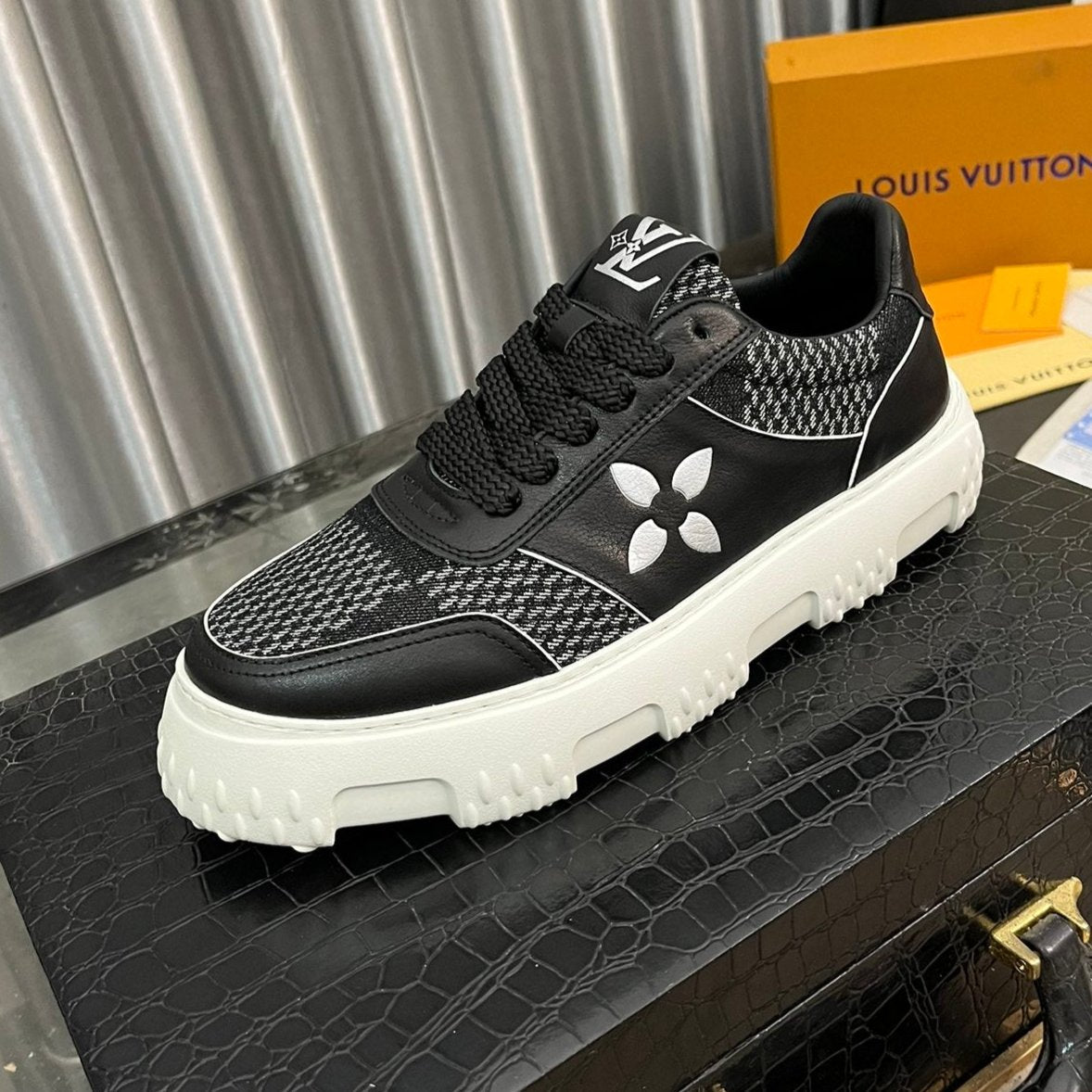 LV SNEAKER IN BLACK MONOGRAM CALFSKIN AND DENIM