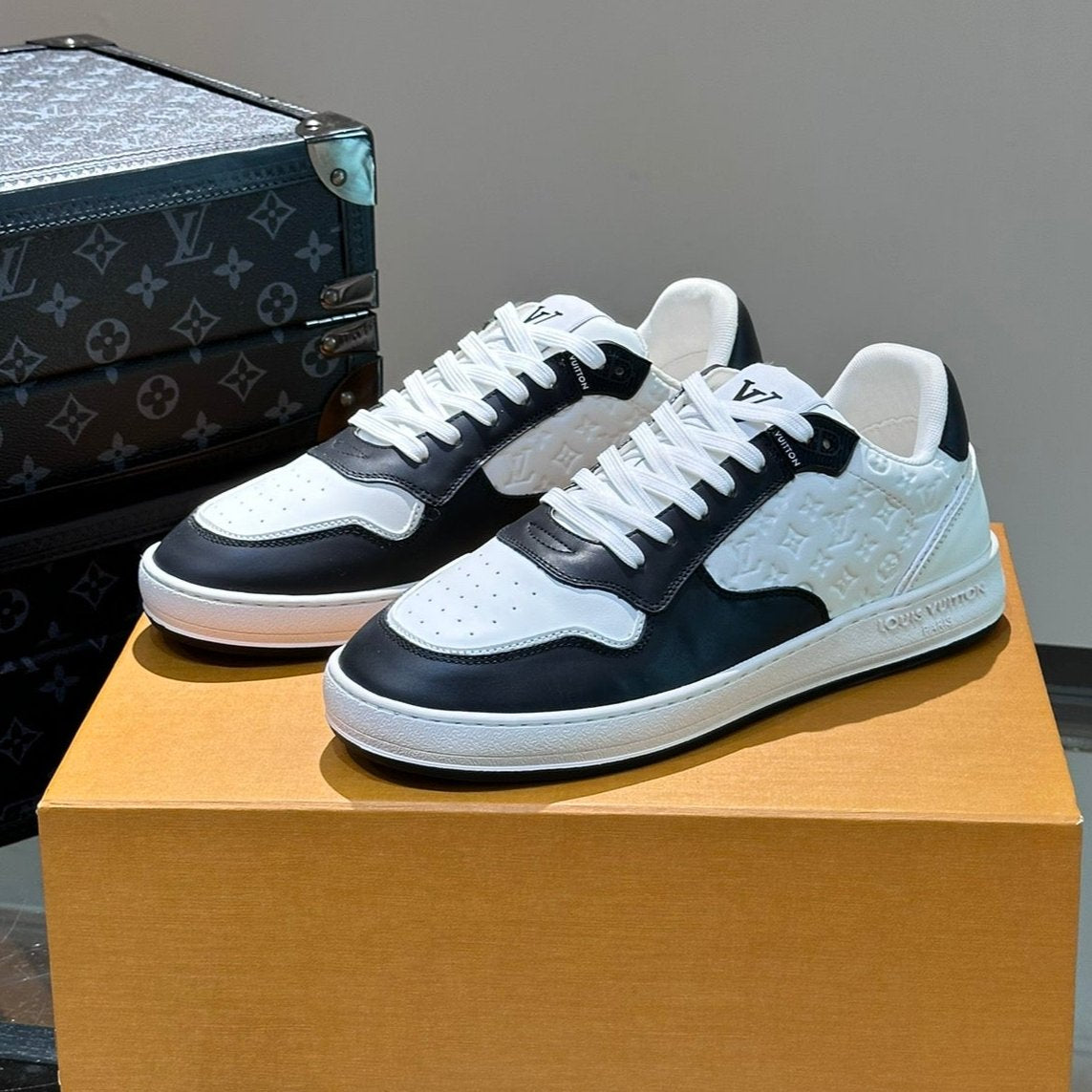 LV SNEAKER WHITE MIX BLACK EMBOSSED CALFSKIN