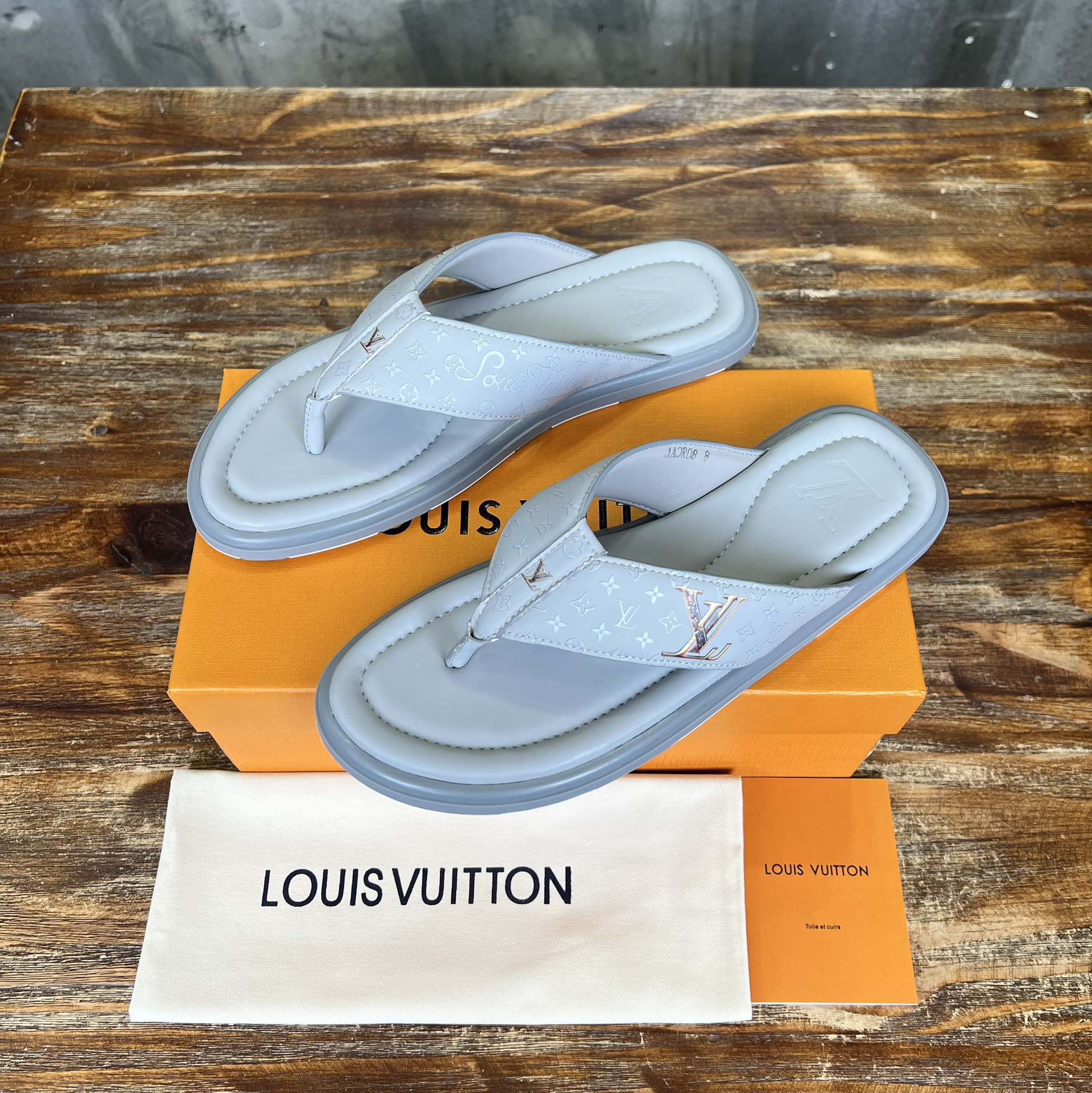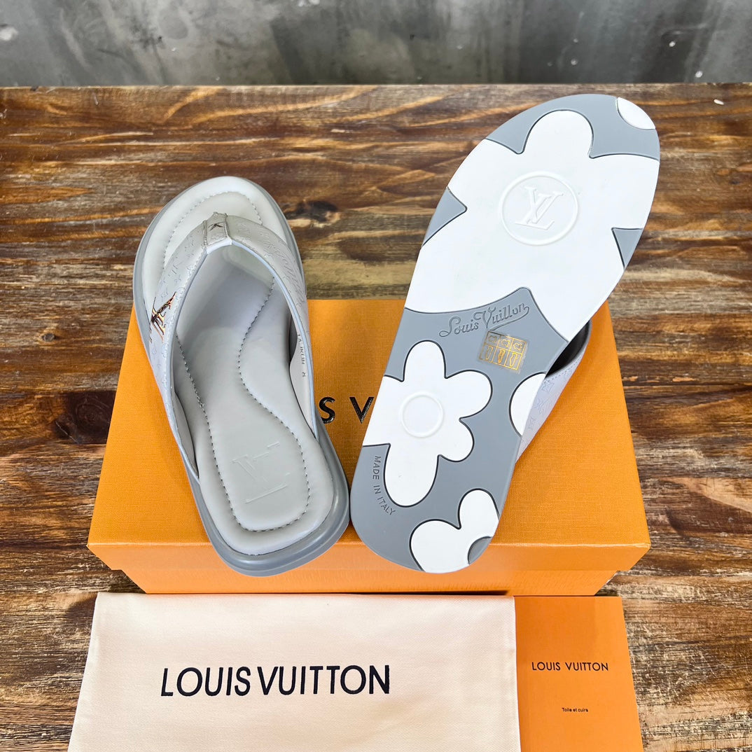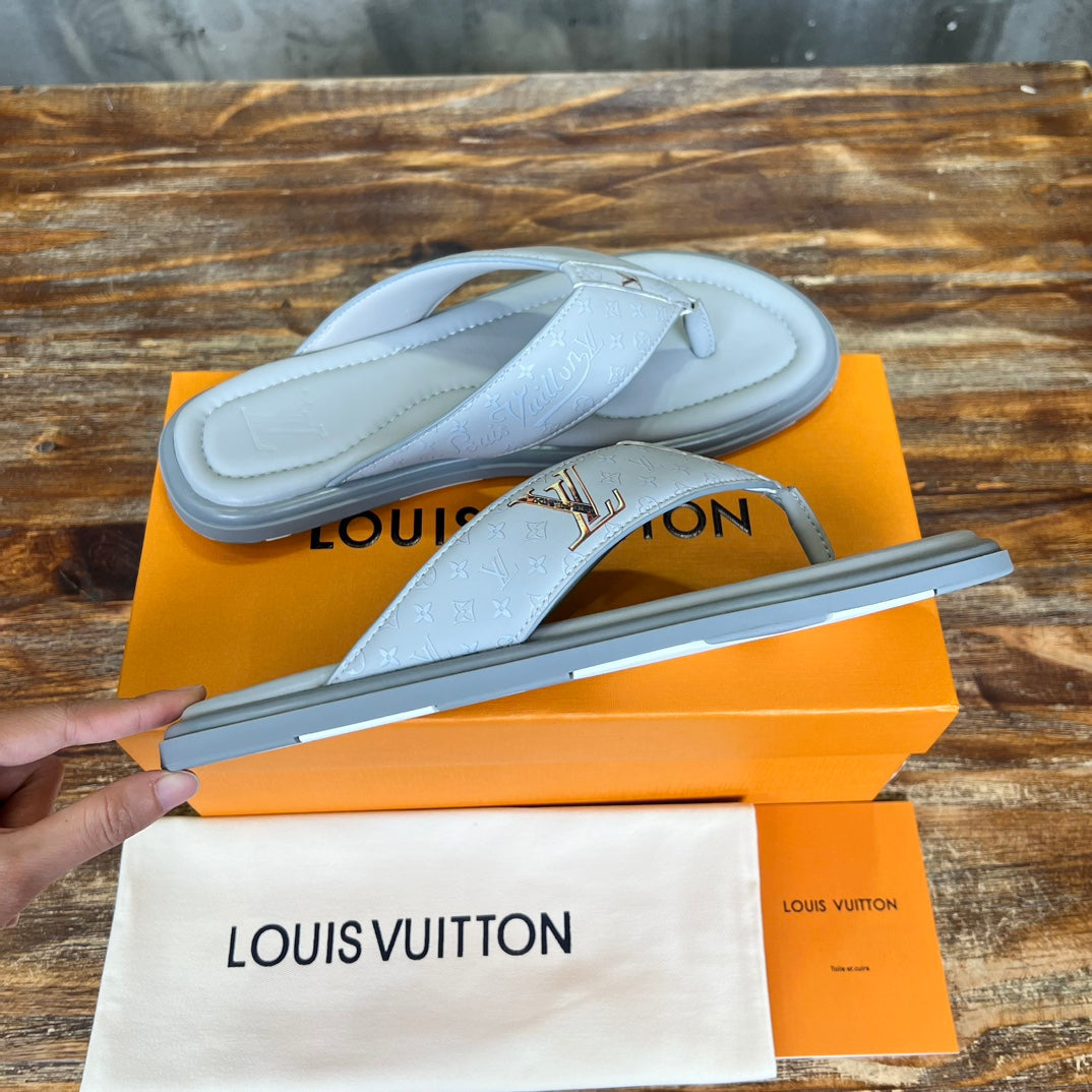 LV THONG SLIPPER IN GREY MONOGRAM CALFSKIN