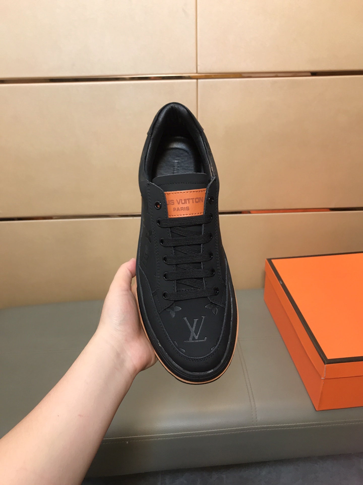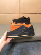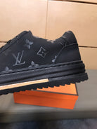 LV TRAINER IN EMBOSSED BLACK SUEDE