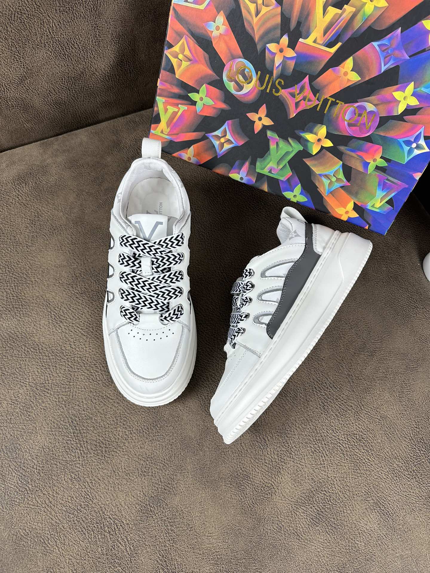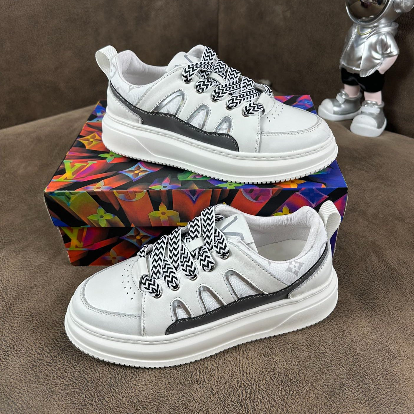 LV TRAINER SHOES IN WHITE MIX BLACK CALFSKIN