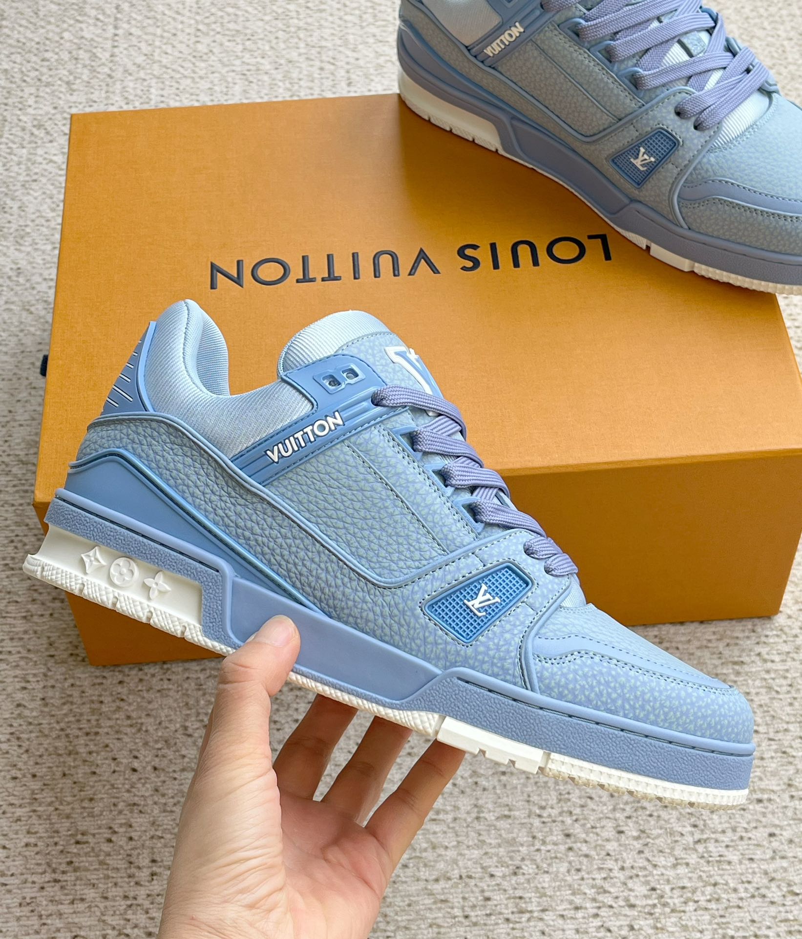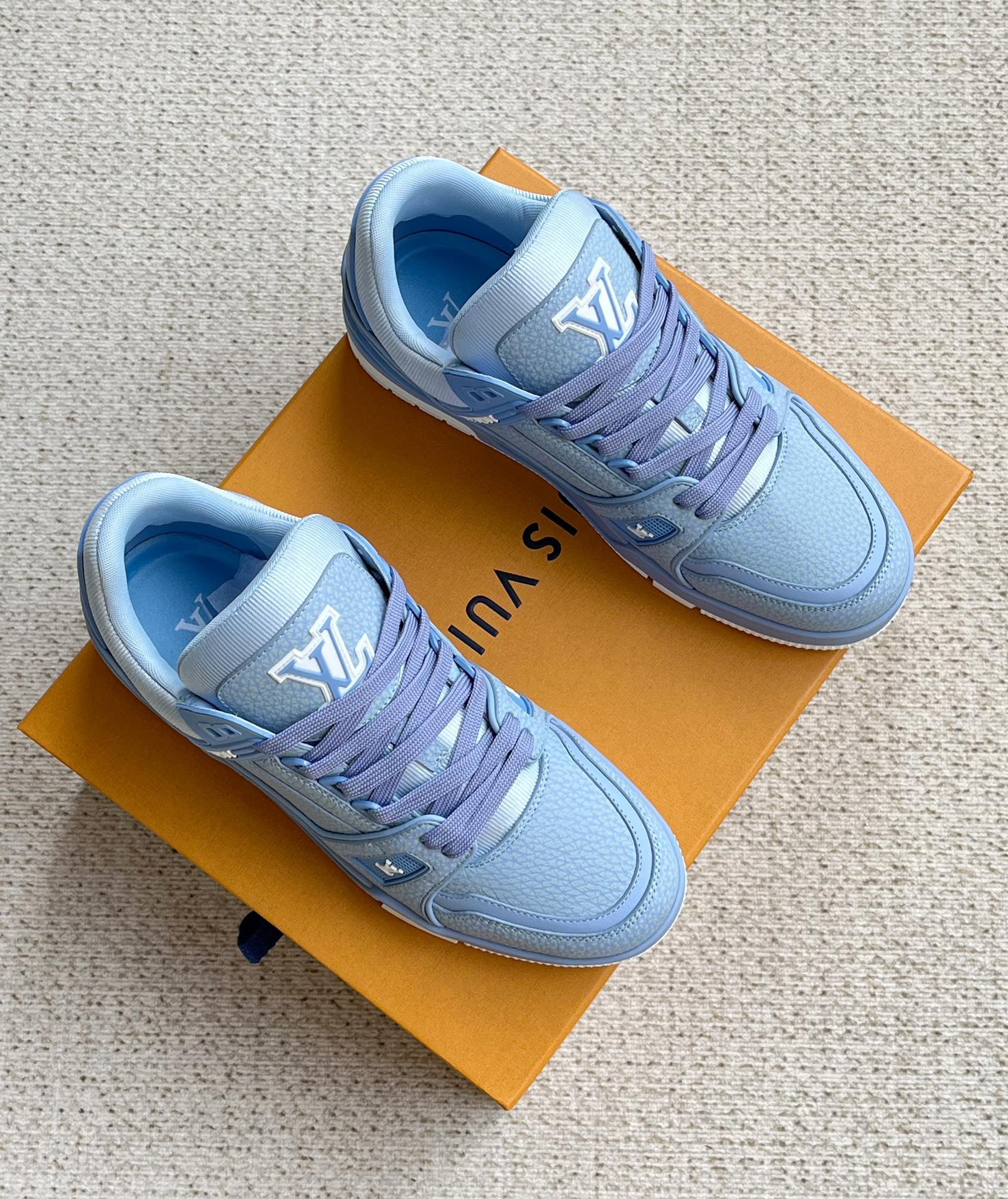 LV TRAINER SHOES SAPPHIRE BLUE GRAINED CALFSKIN