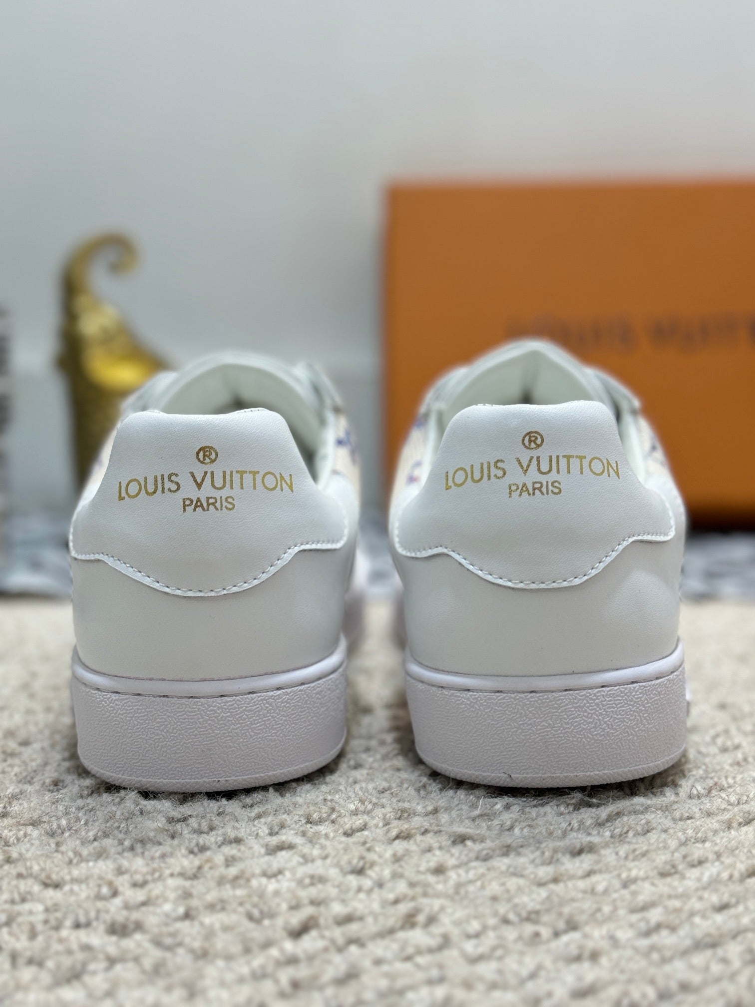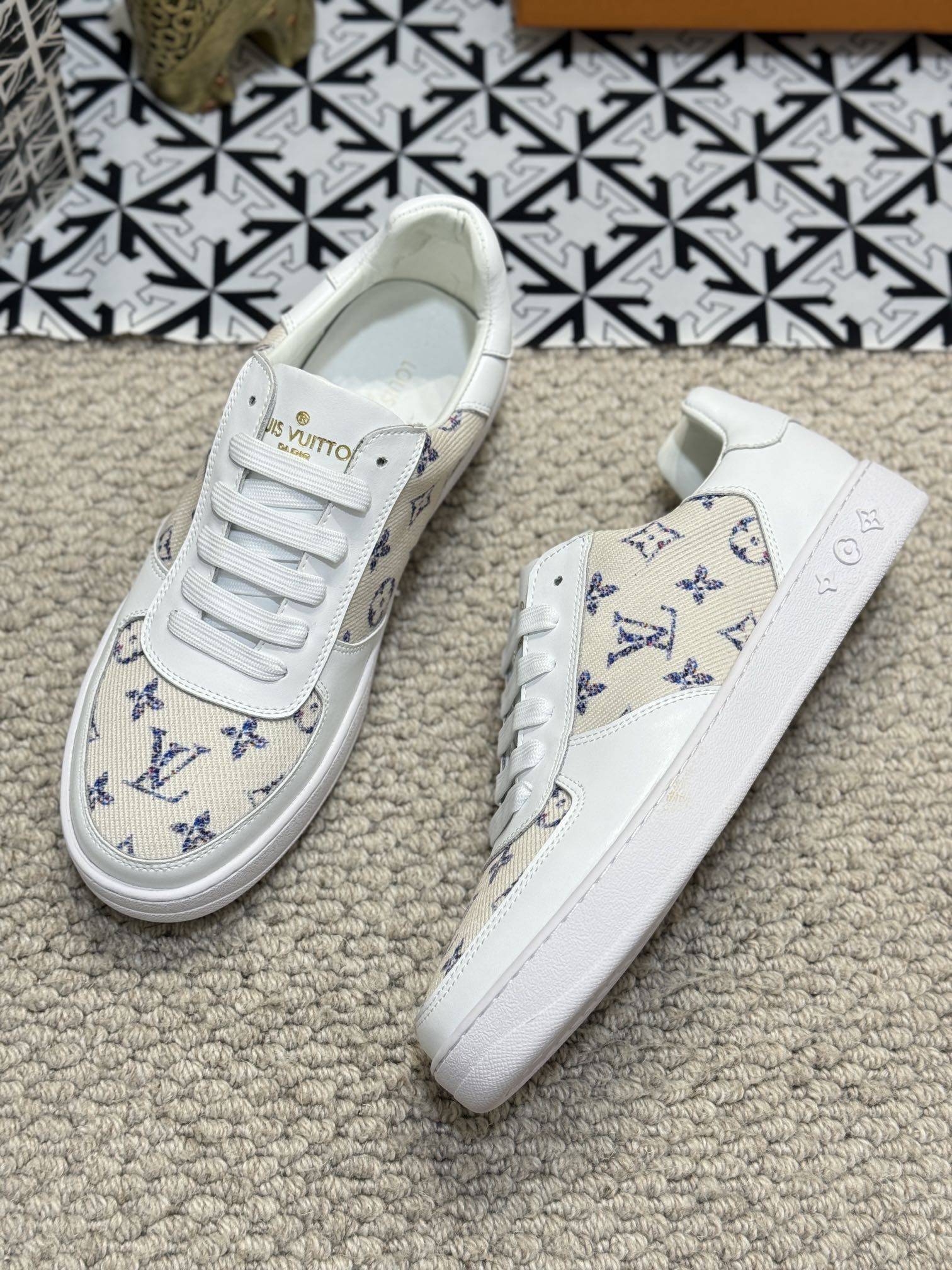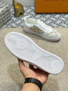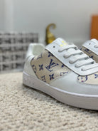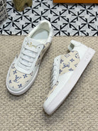 LV TRAINER SNEAKER WHITE CALFSKIN AND CAMEL BEIGE MONOGRAM CANVAS