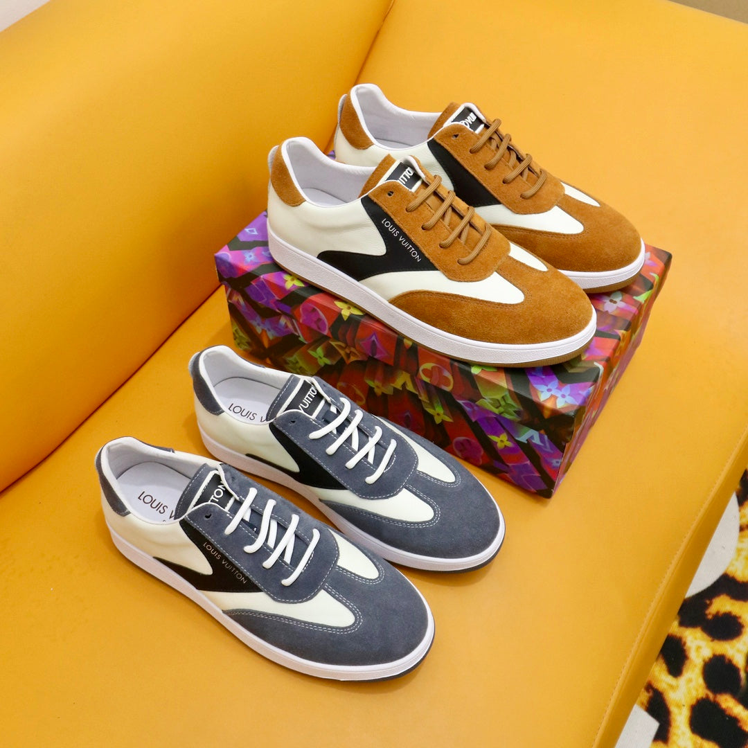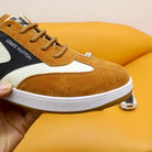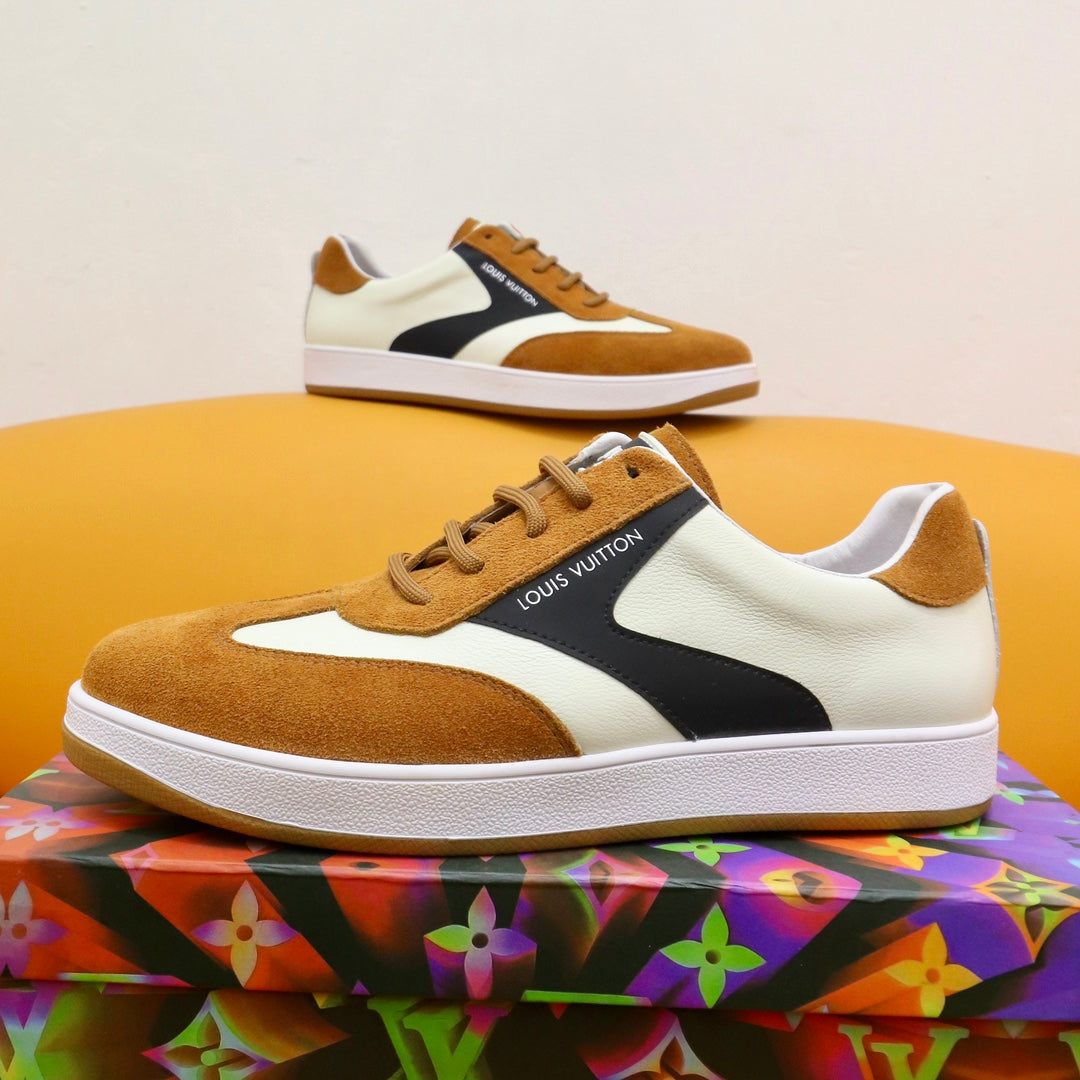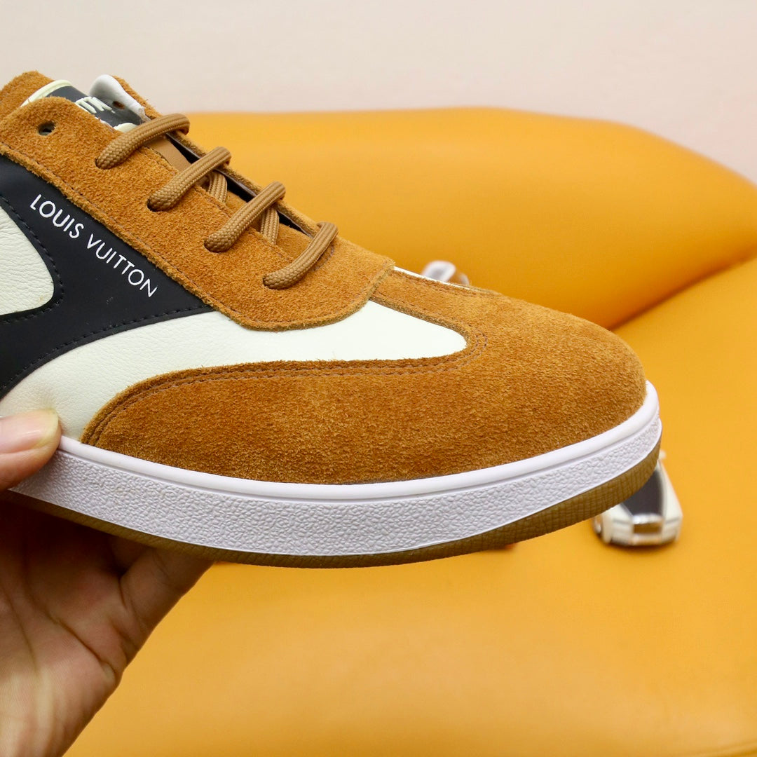 LV TRAINERS IN AMBER YELLOW SUEDE AND WHITE MIX BLACK CALFSKIN