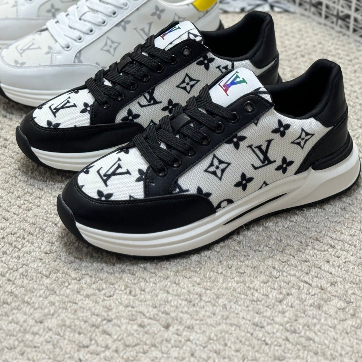 LV TRAINERS IN BLACK CALFSKIN AND WHITE JACQUARD