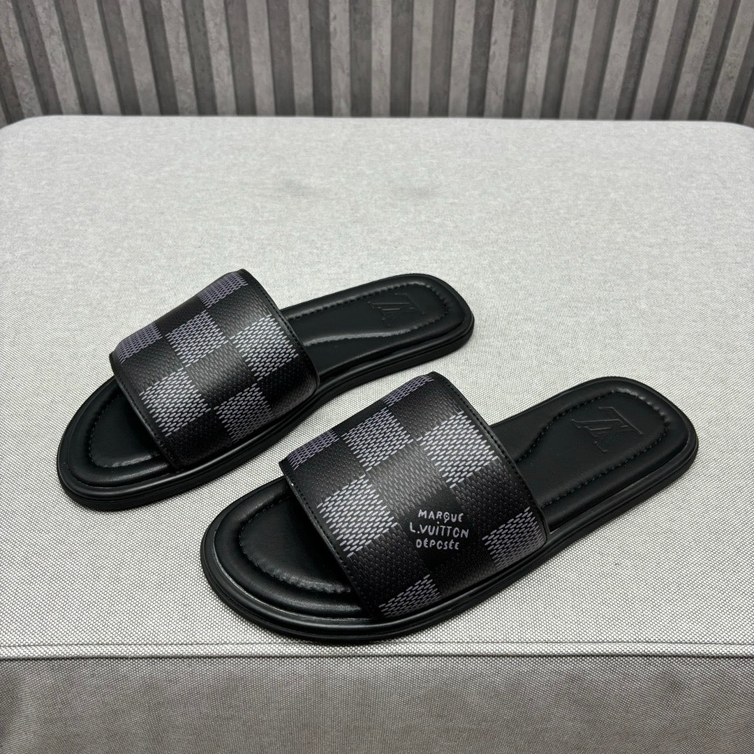 • Premium LV men's slippers, synchronizing with the 2024 early autumn runway collection. The slippers feature a high-quality fabric upper and an original, exclusive comfort sole, ensuring exceptional comfort. These are original factory-followed products.
