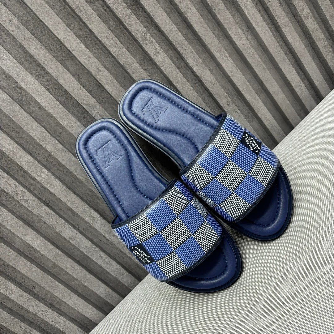 • Premium LV men's slippers, synchronizing with the 2024 early autumn runway collection. The slippers feature a high-quality fabric upper and an original, exclusive comfort sole, ensuring exceptional comfort. These are original factory-followed products.