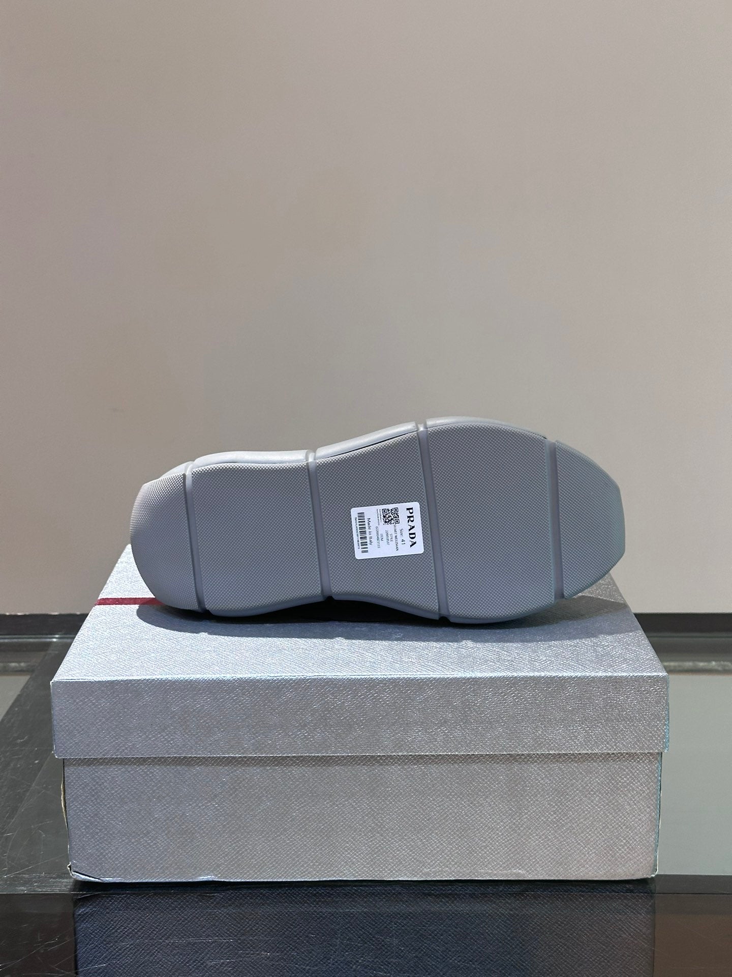 • Material: Cowhide Upper with Breathable Mesh Panels, Soft and Comfortable, Breathable Tongue Decorated with PRADA Brand Letter Logo, Rubber Thick Sole with Red Tag Tongue Echo
