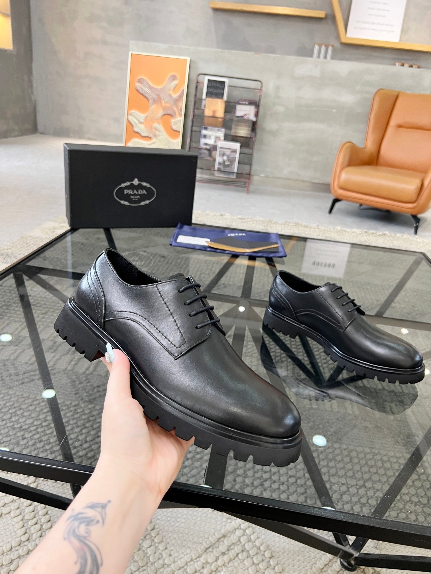 PRA LACE-UP SHOES IN BLACK CALFSKIN