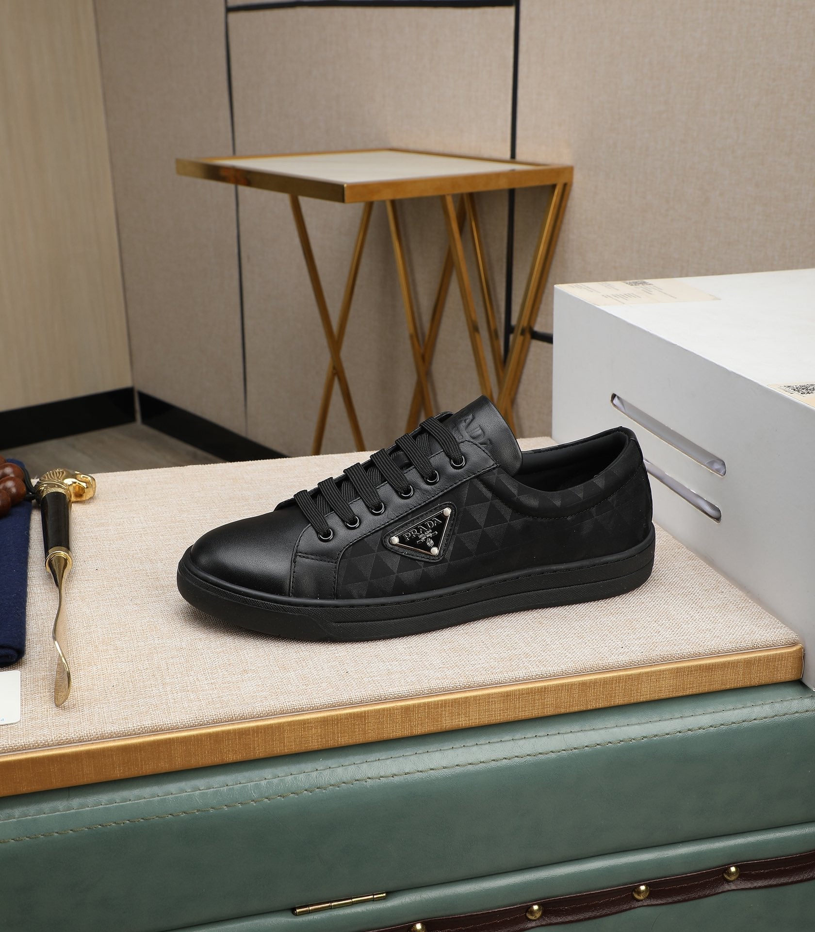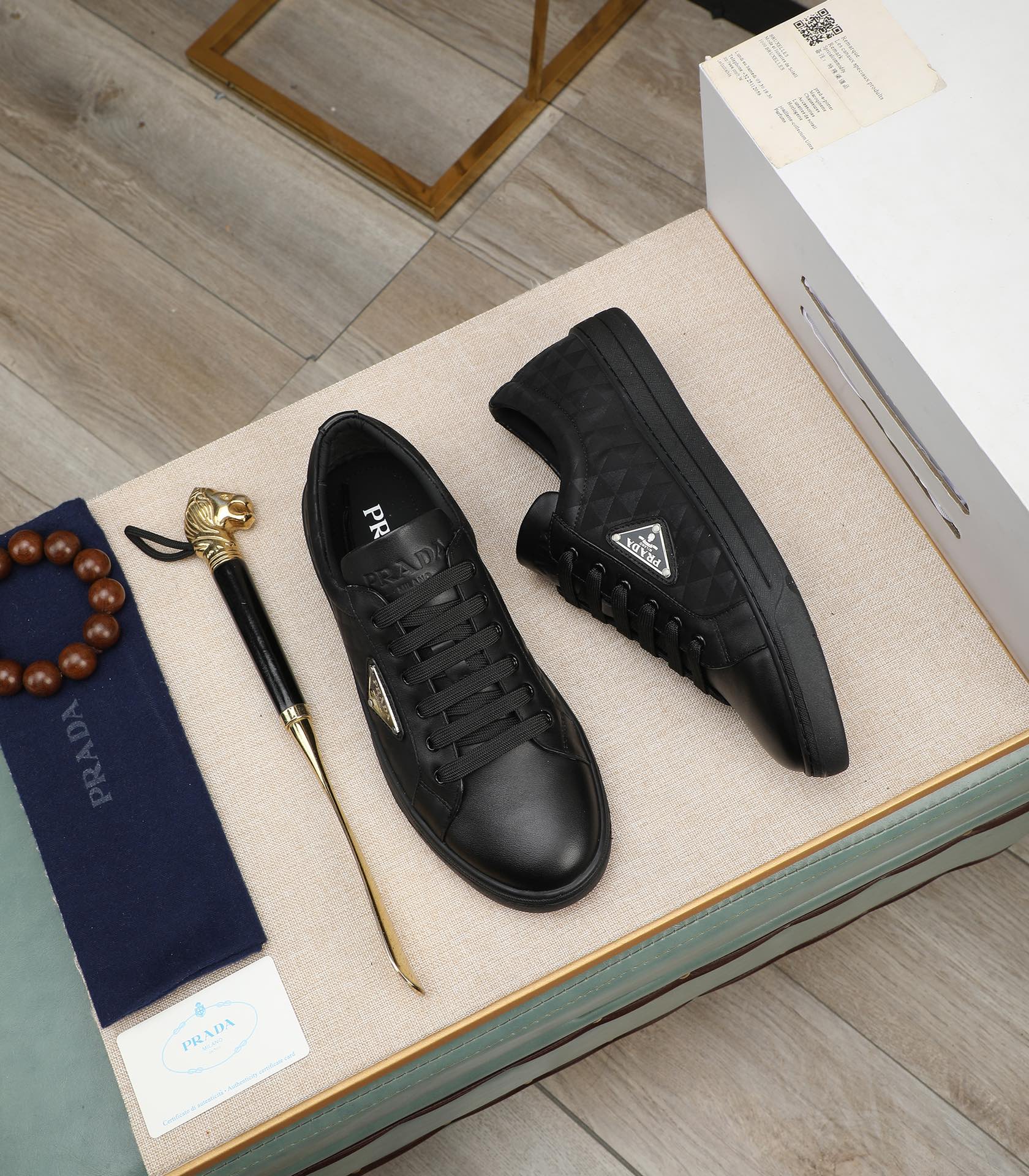 PRA RE-NYLON SNEAKERS IN BLACK LEATHER AND FABRIC