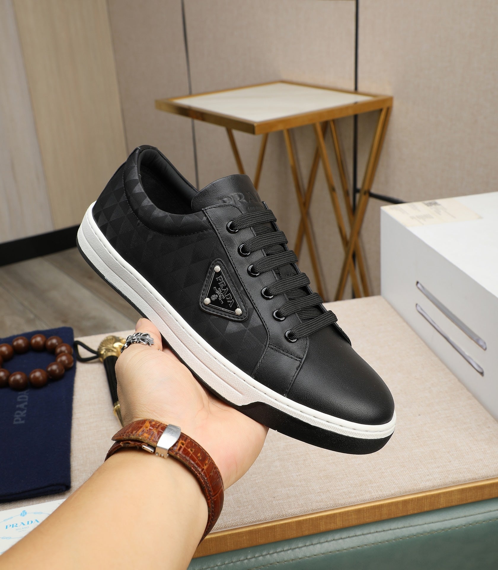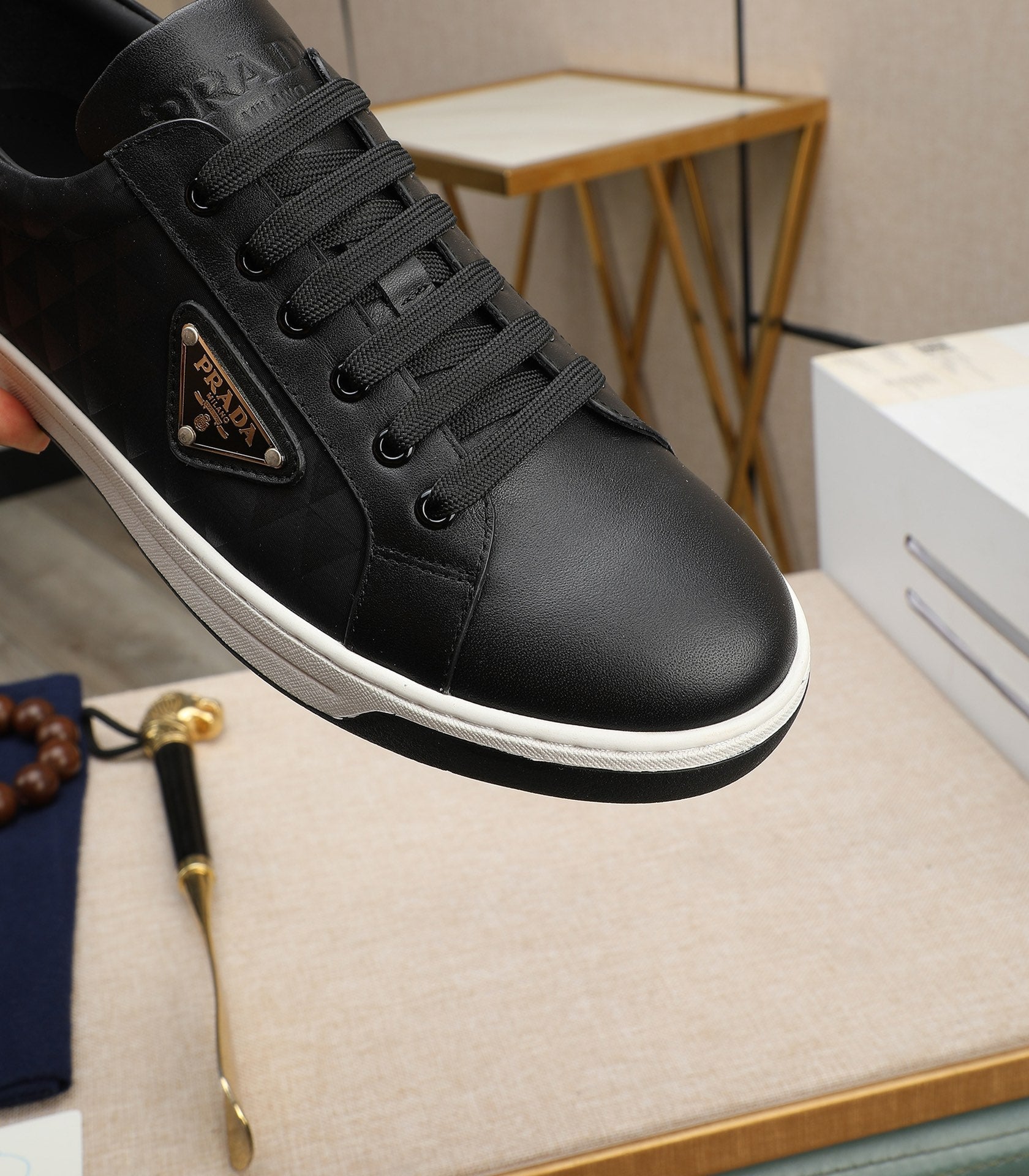 PRA RE-NYLON SNEAKERS IN BLACK MIX WHITE LEATHER AND FABRIC