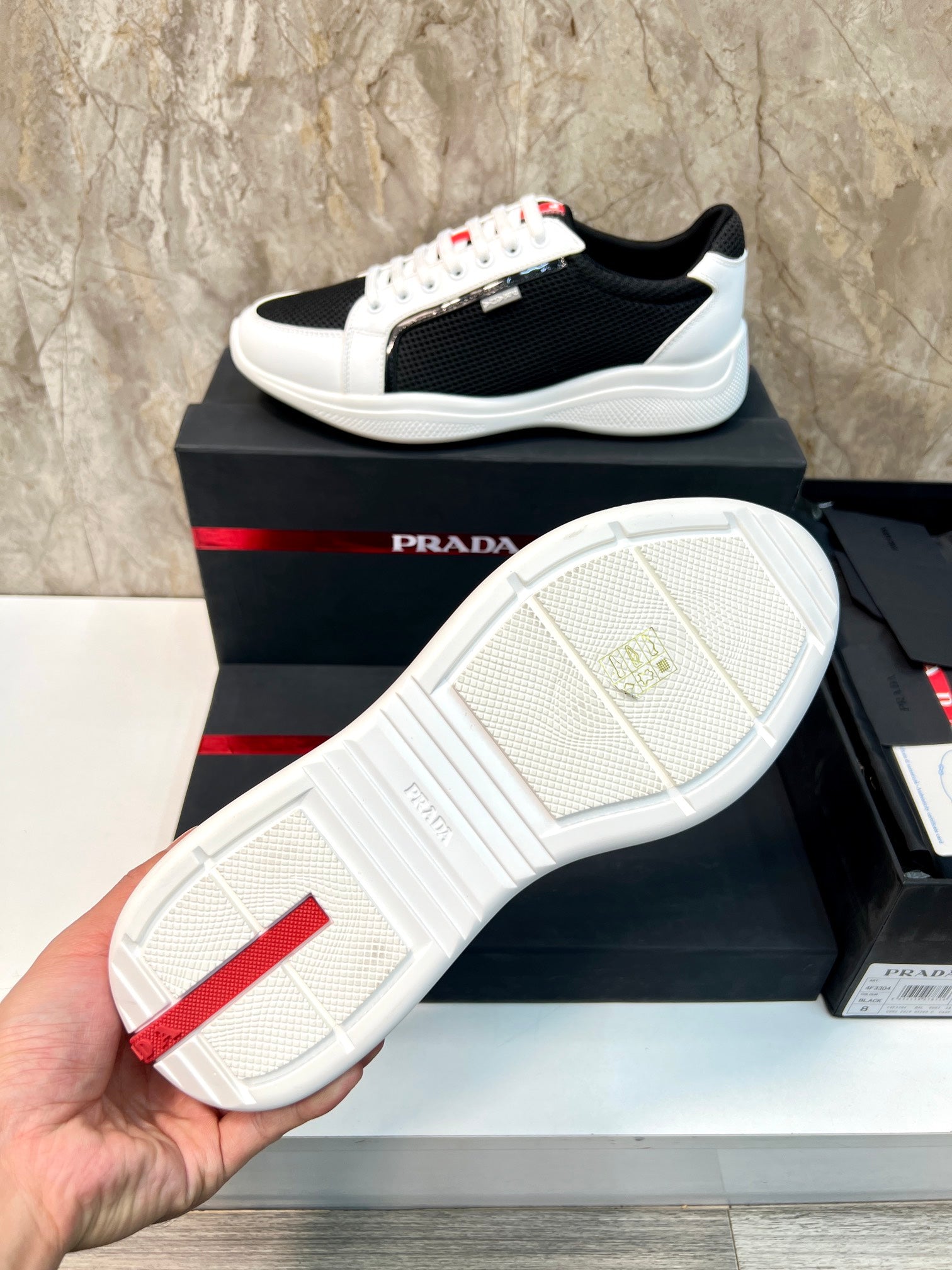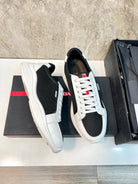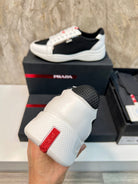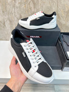PRA SNEAKER WHITE MIX BLACK CALFSKIN AND MESH FABRIC
