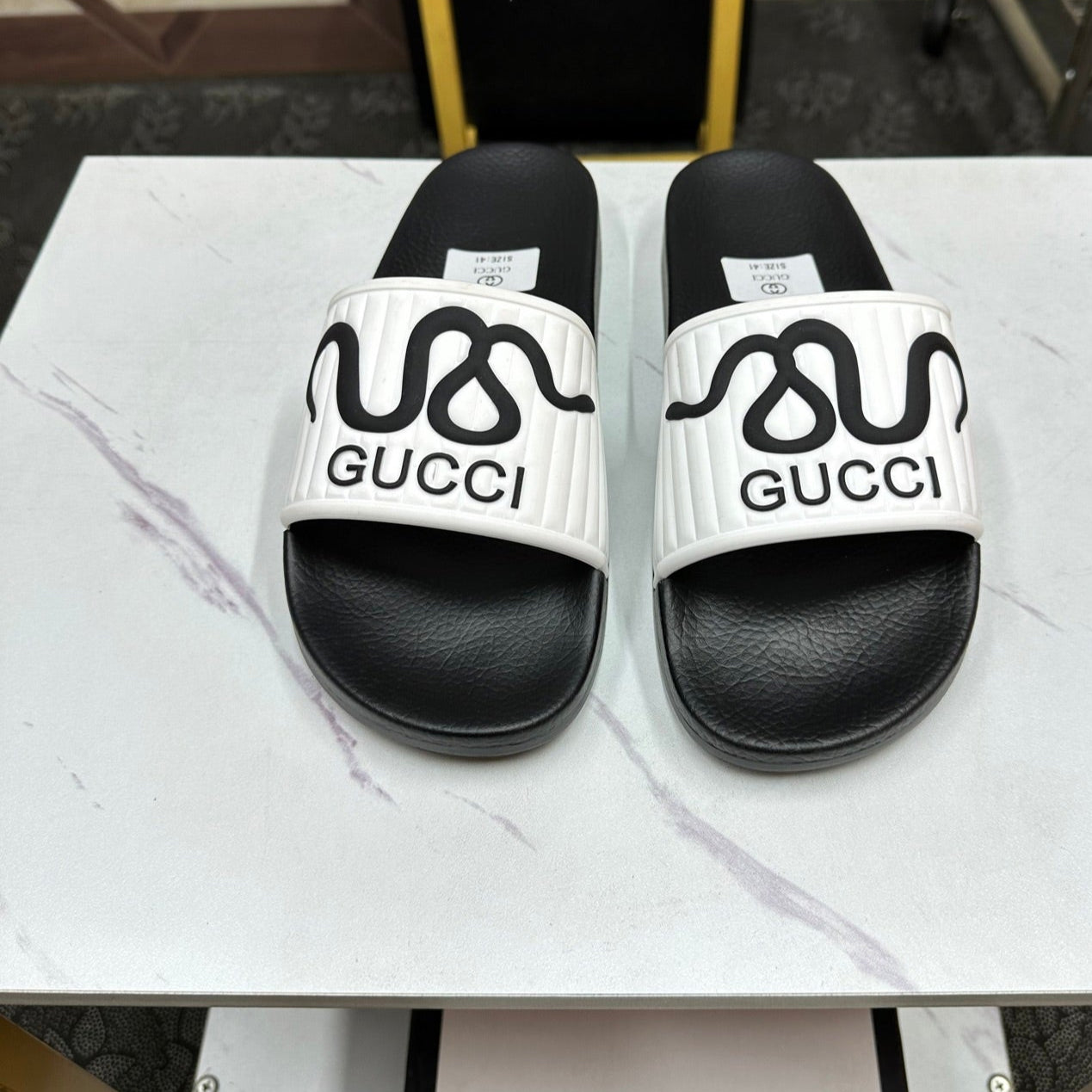 GG Men's Snake Embossed Slide White Rubber 540111