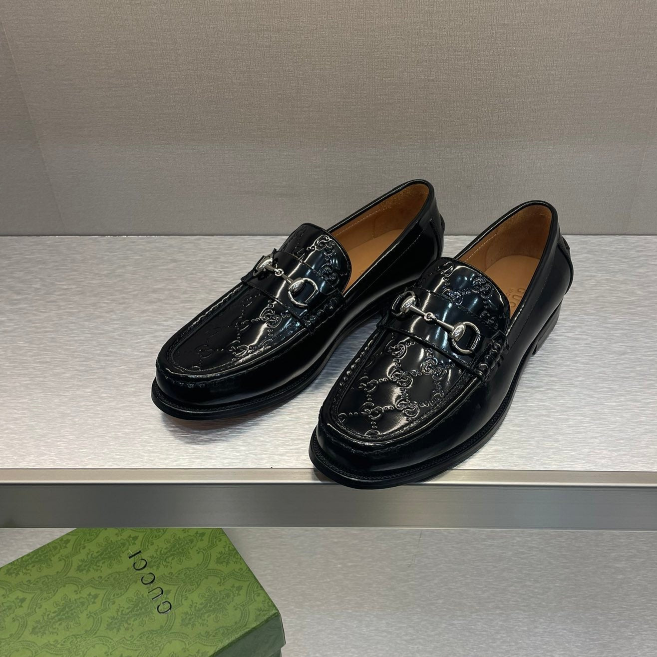 GG Men's Horsebit Loafer Black Embossed Patent Leather 542449