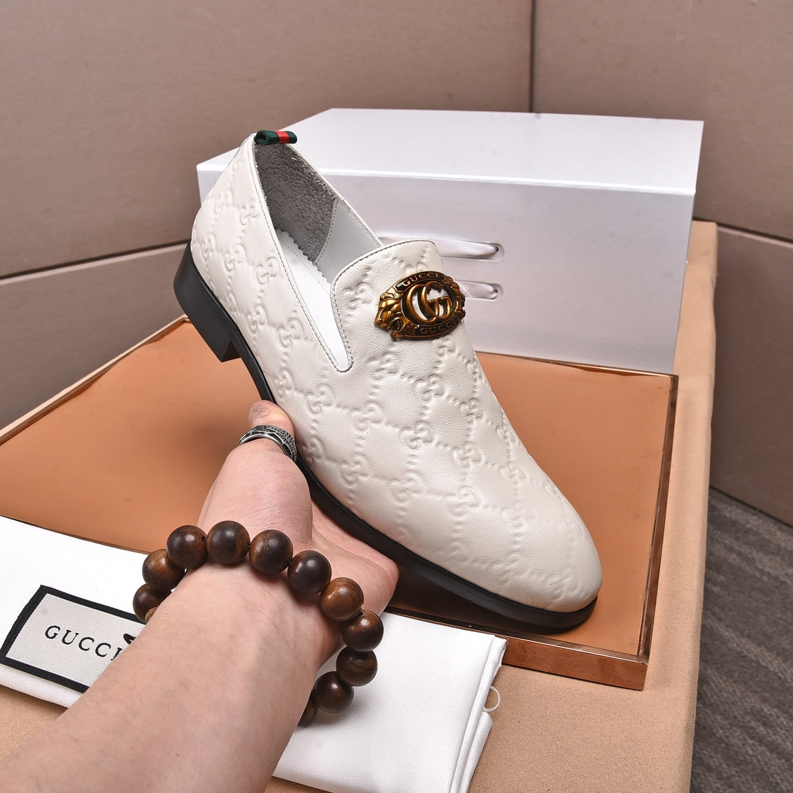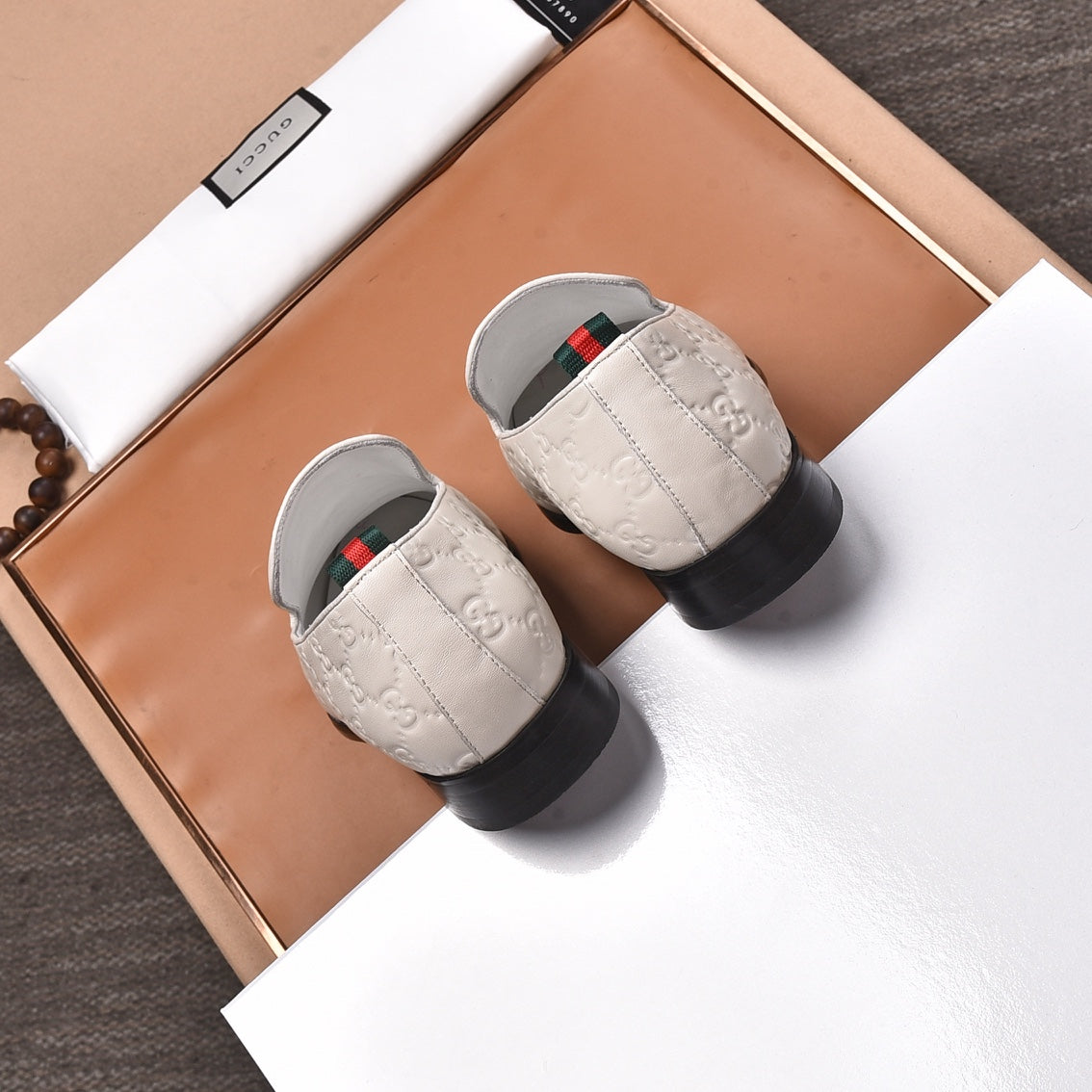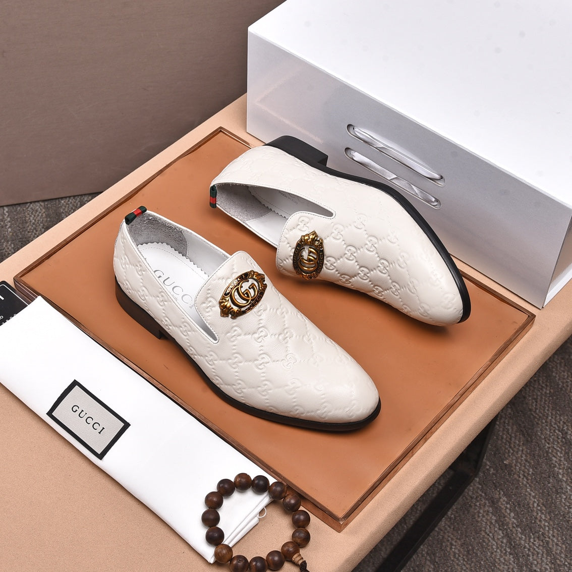 GG Men's Loafer White Embossed Cowhide 538718