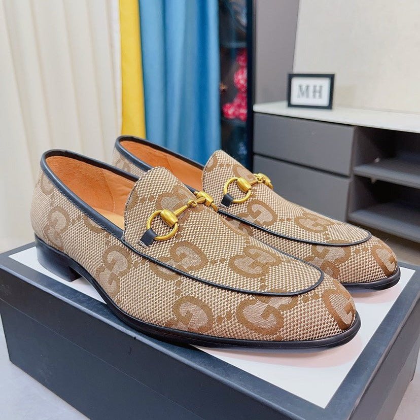 GG Men's Horsebit Loafer Brown Fabric 520454