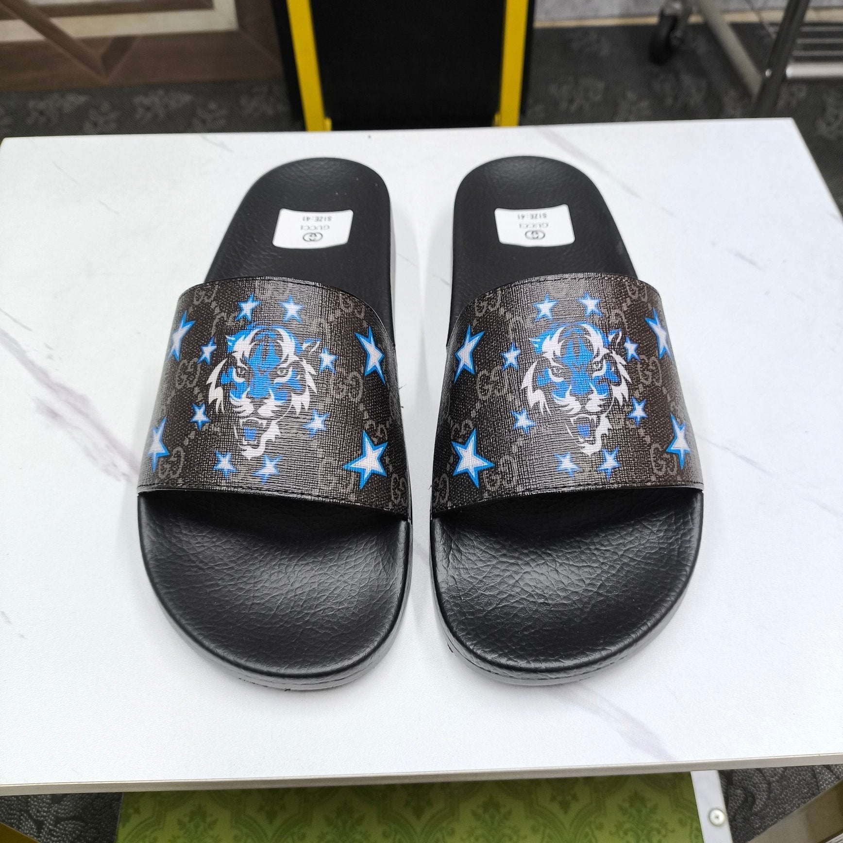 GG Men's Tiger Slide Black Sheepskin 535381