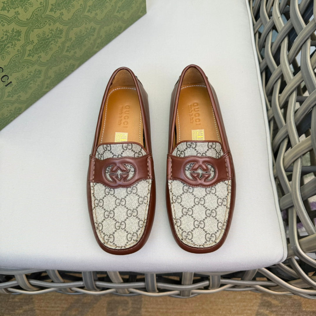 GG Men's Loafer Brown Canvas Cowhide 537555