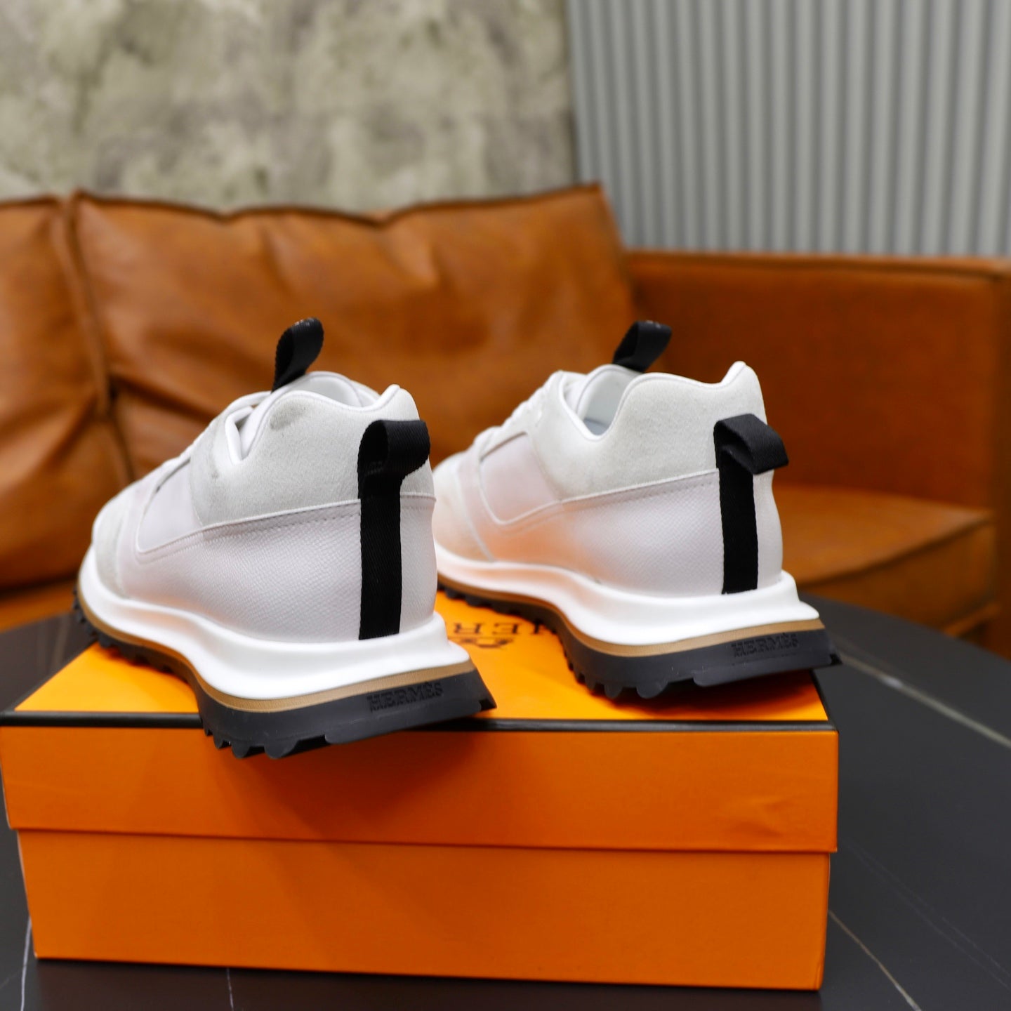 HM Men's Bouncing Sneaker White Brown Calfskin Fabric 754130