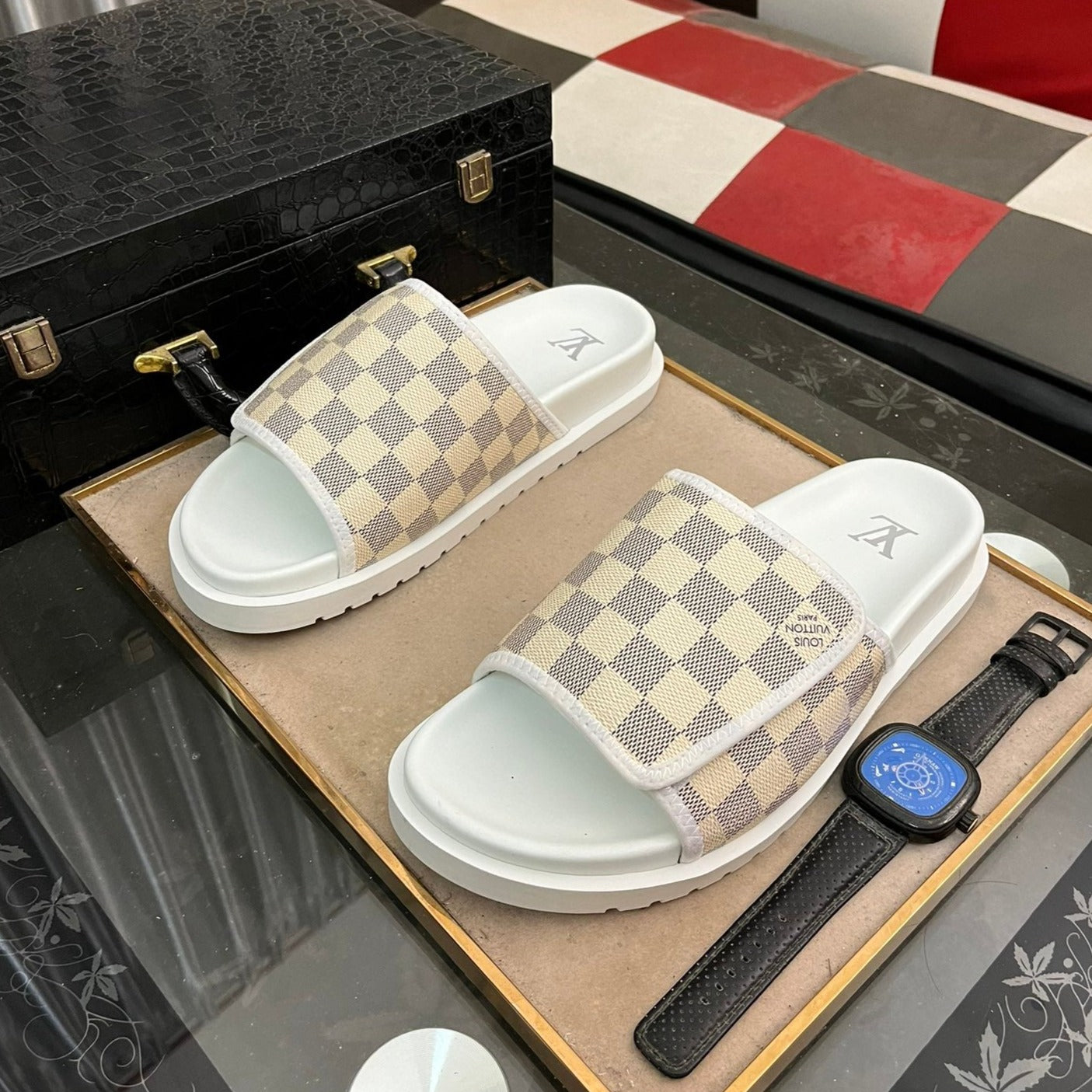 MIAMI MULE IN BEIGE CREAM DAMIER JACQUARD