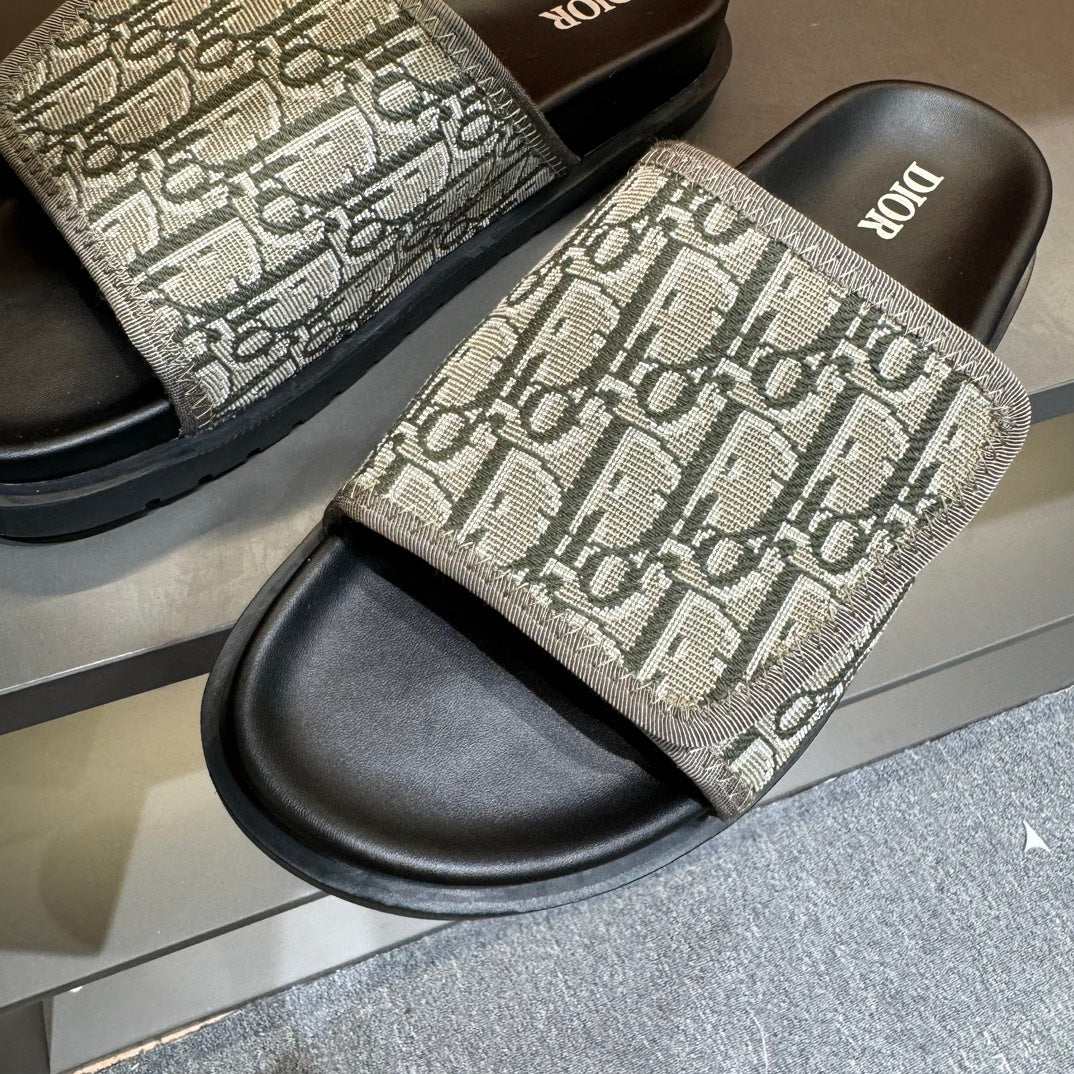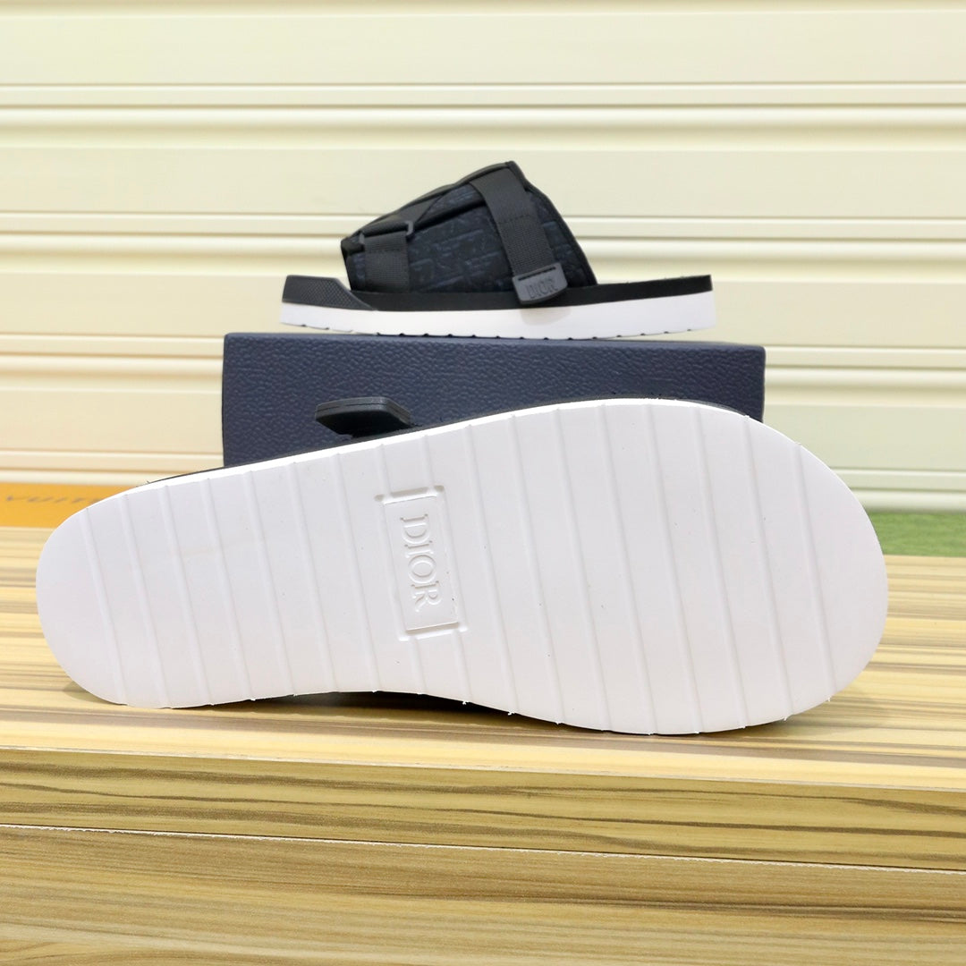 CD VELCRO STRAP SLIPPER BLACK JACQUARD