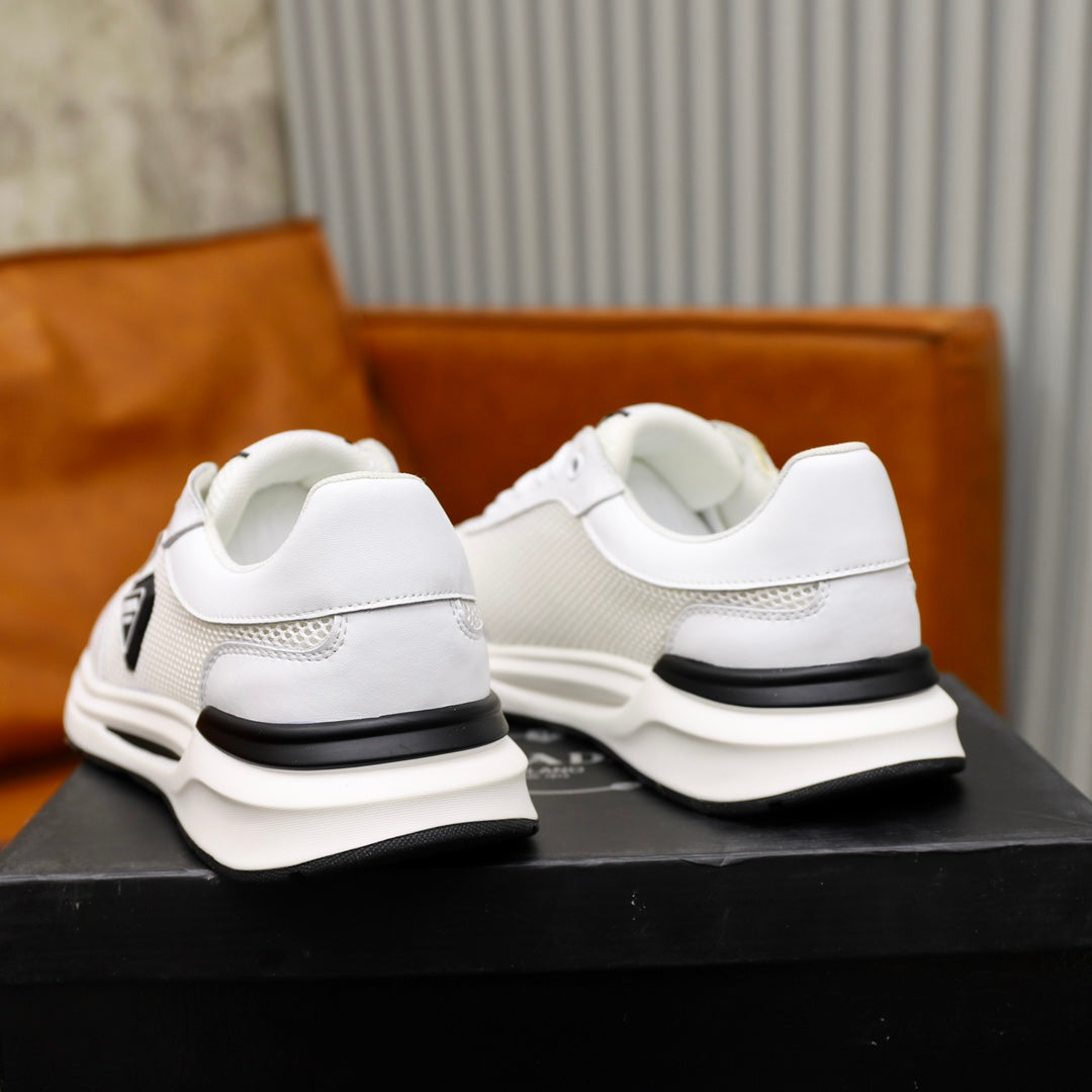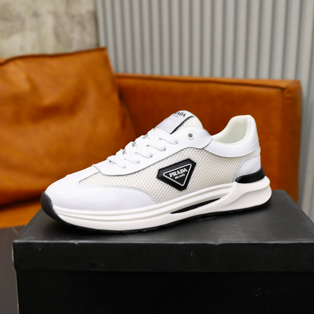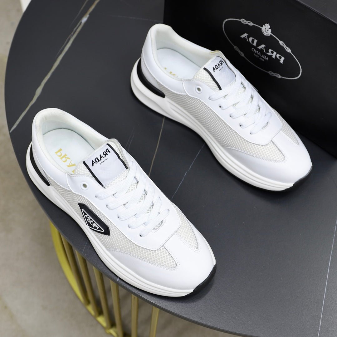 PRA SNEAKER WHITE CALFSKIN AND MESH FABRIC