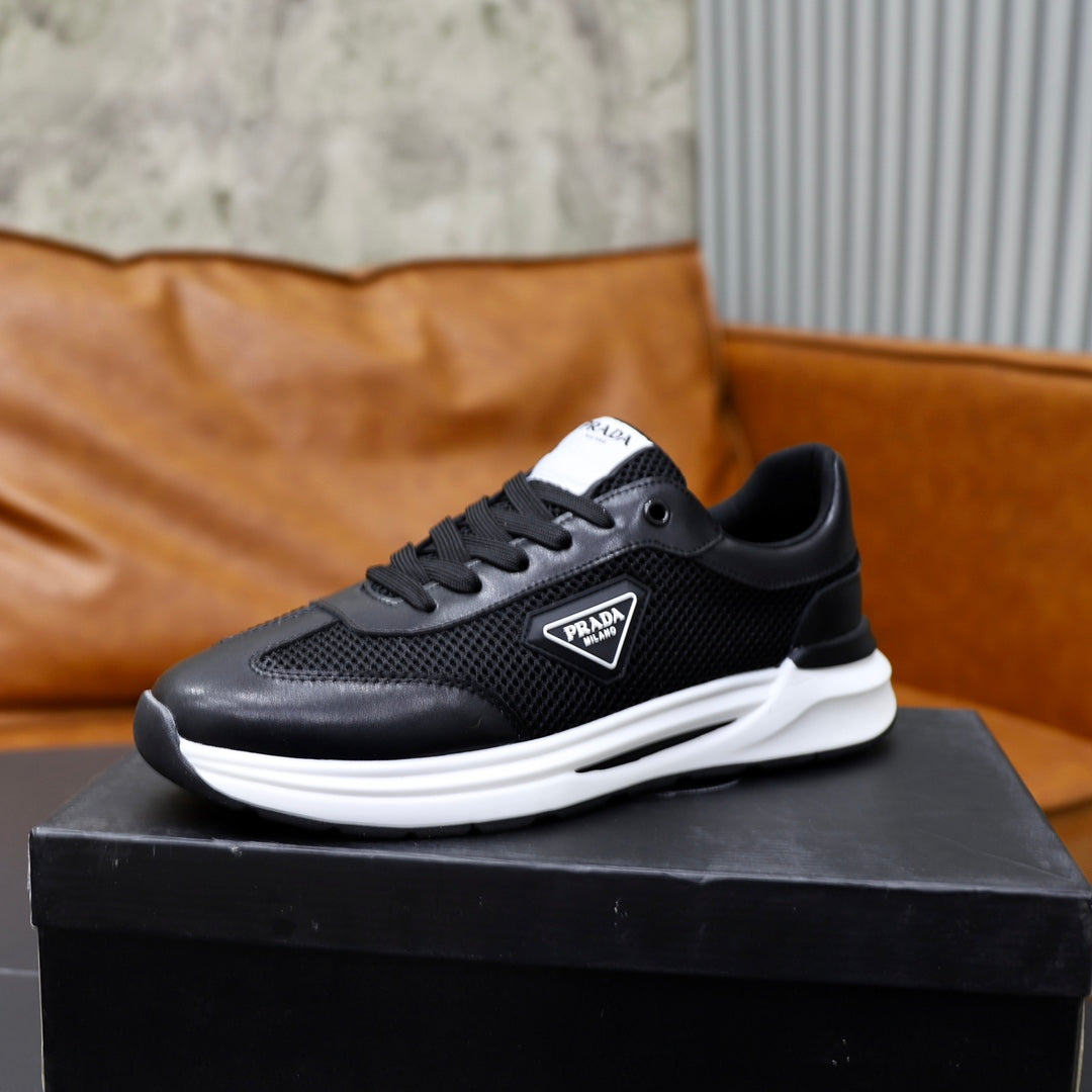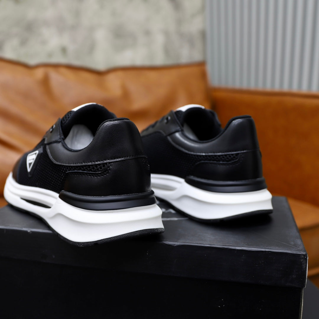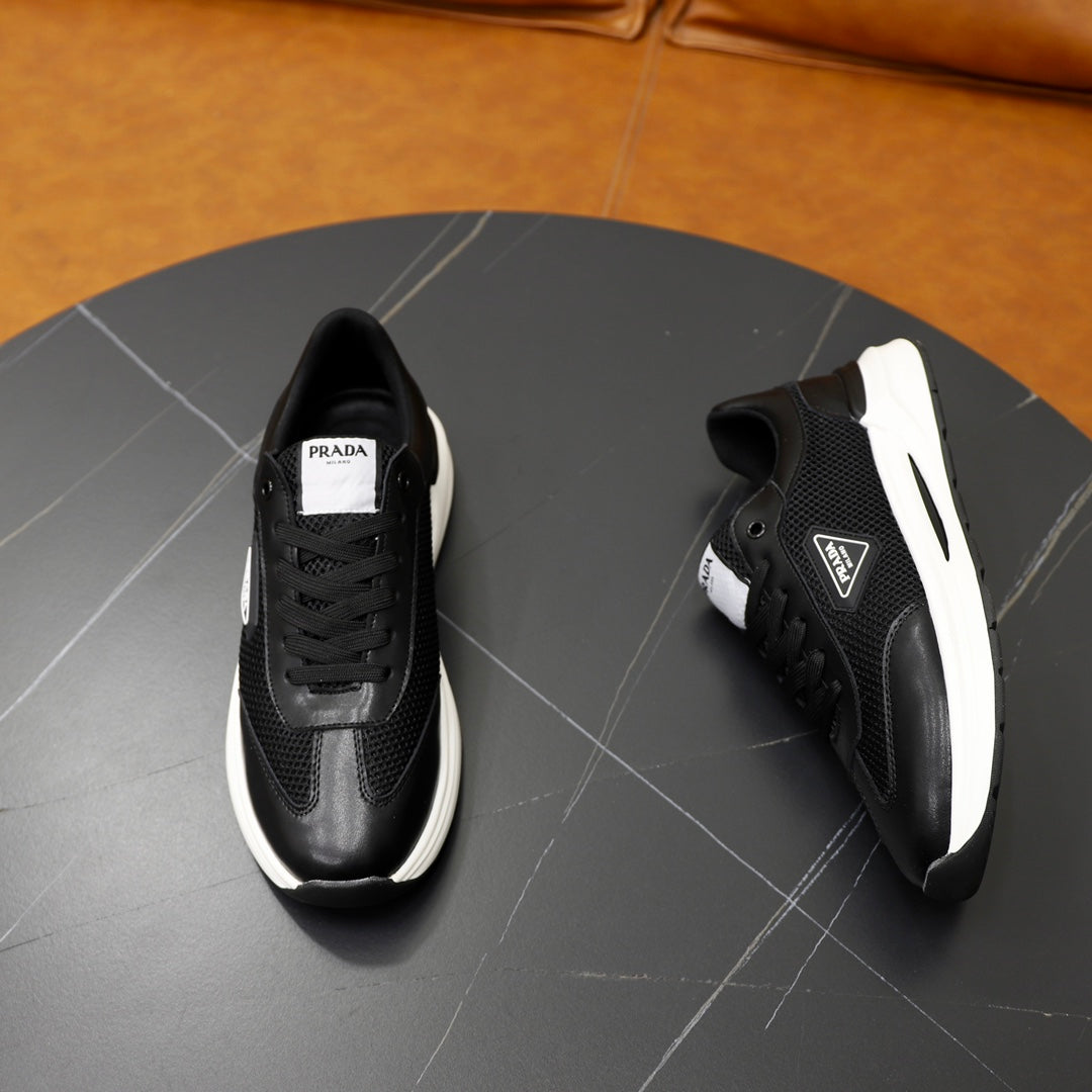 PRA SNEAKER BLACK CALFSKIN AND MESH FABRIC
