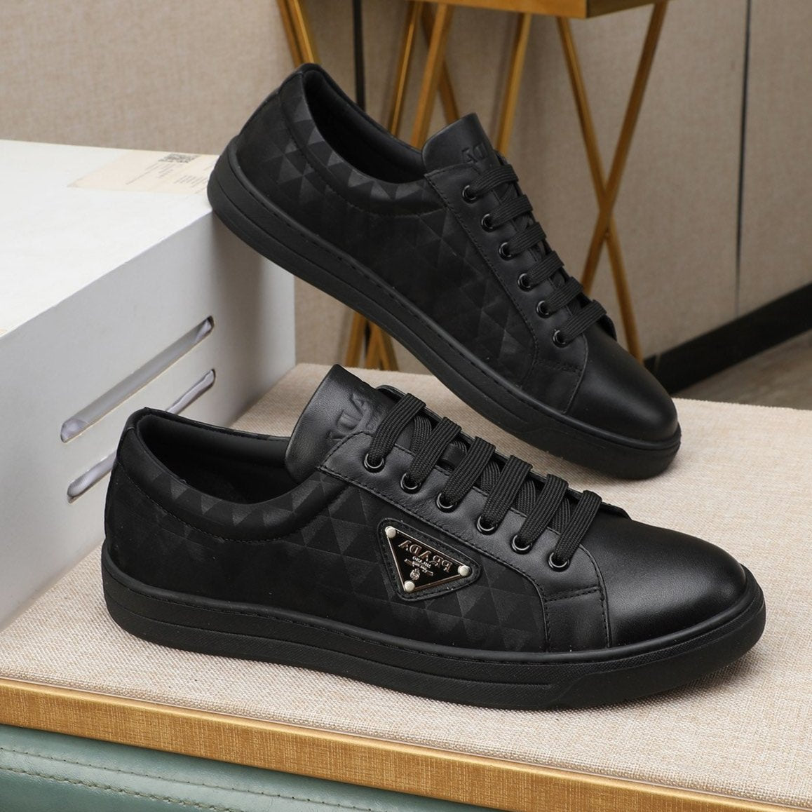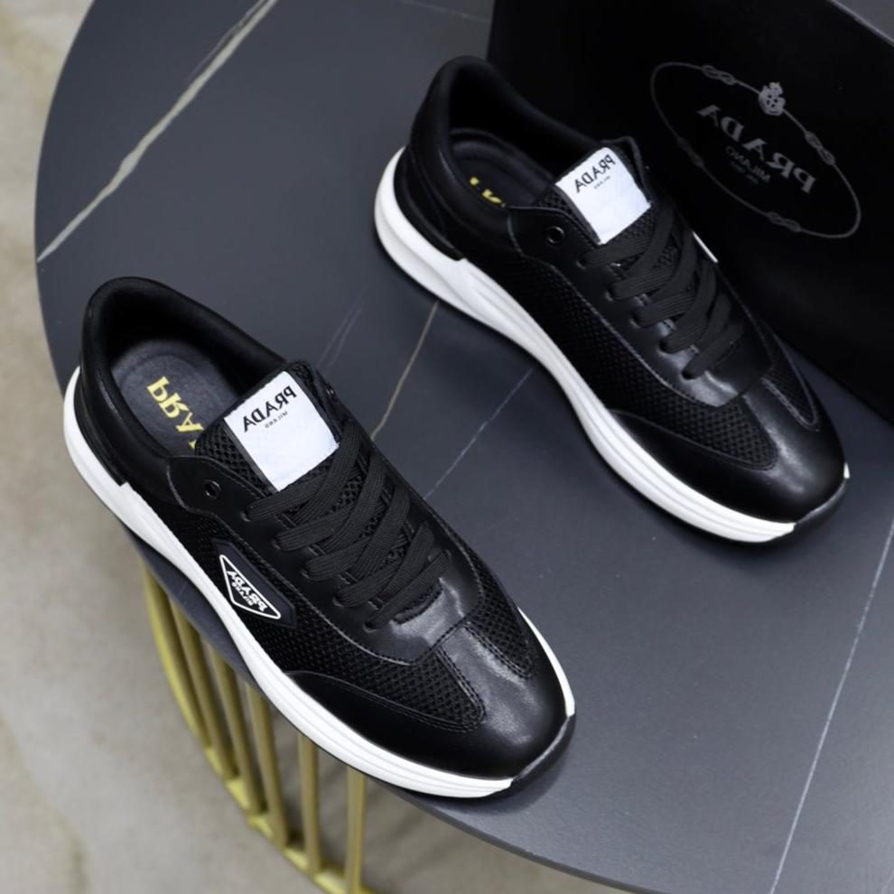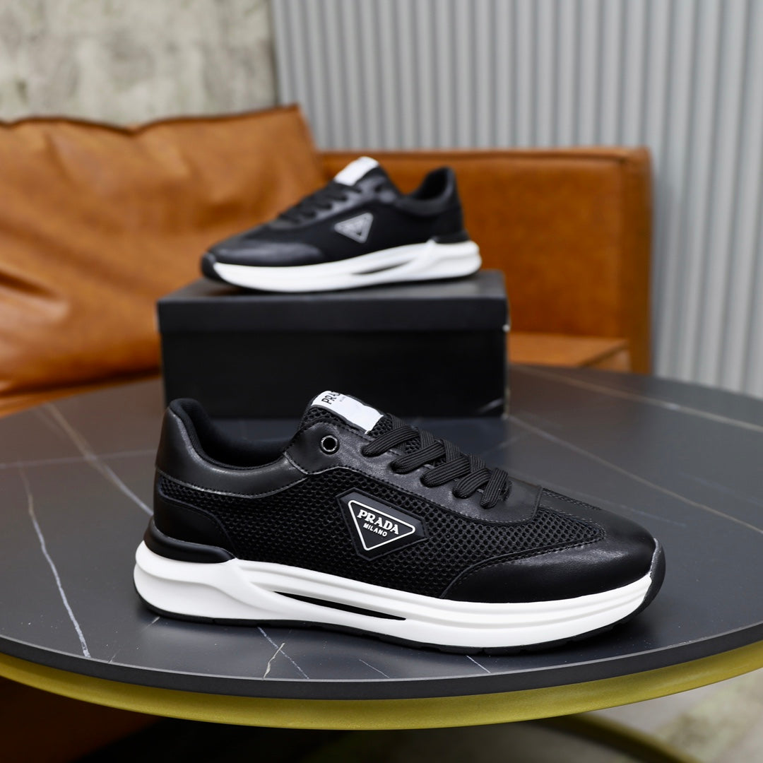 PRA SNEAKER BLACK CALFSKIN AND MESH FABRIC