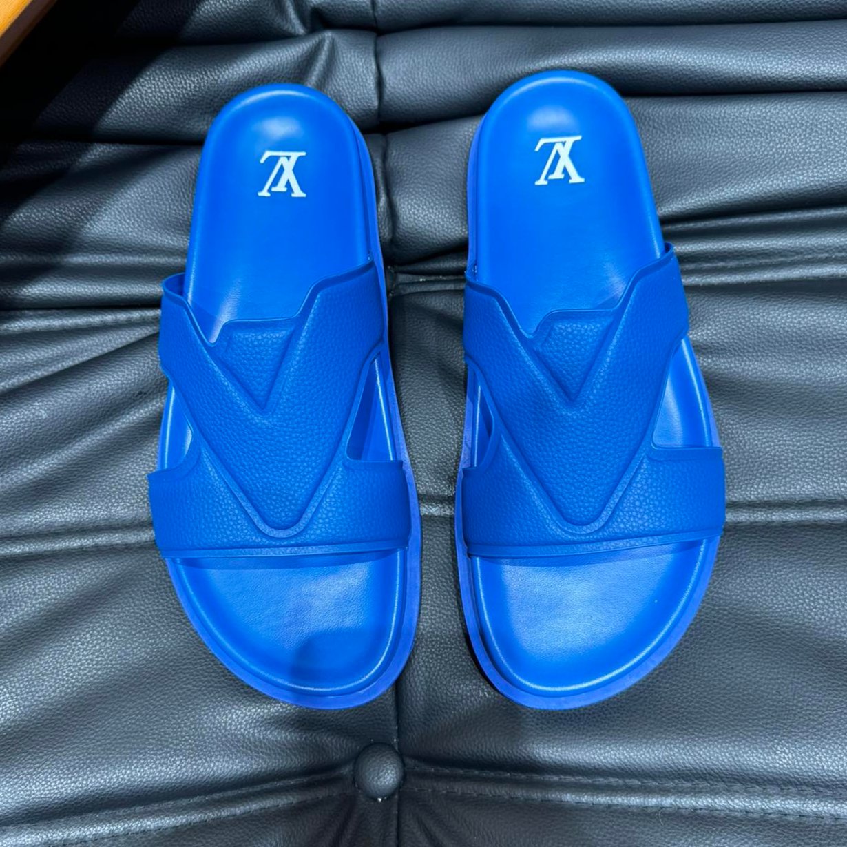 LV SLIPPERS IN COBALT BLUE MONOGRAM CALFSKIN