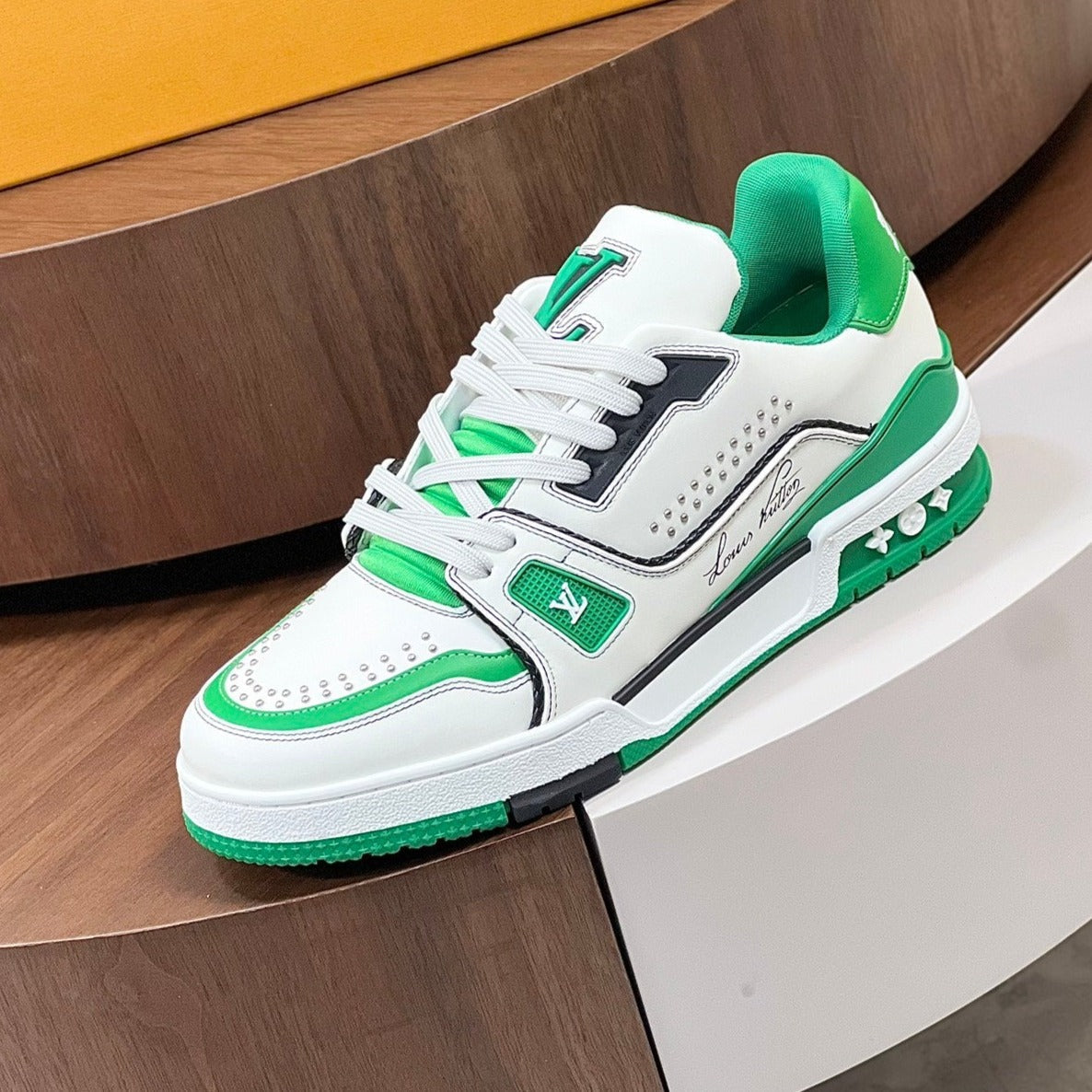 LV TRAINER WHITE MIX GREEN MONOGRAM CALFSKIN