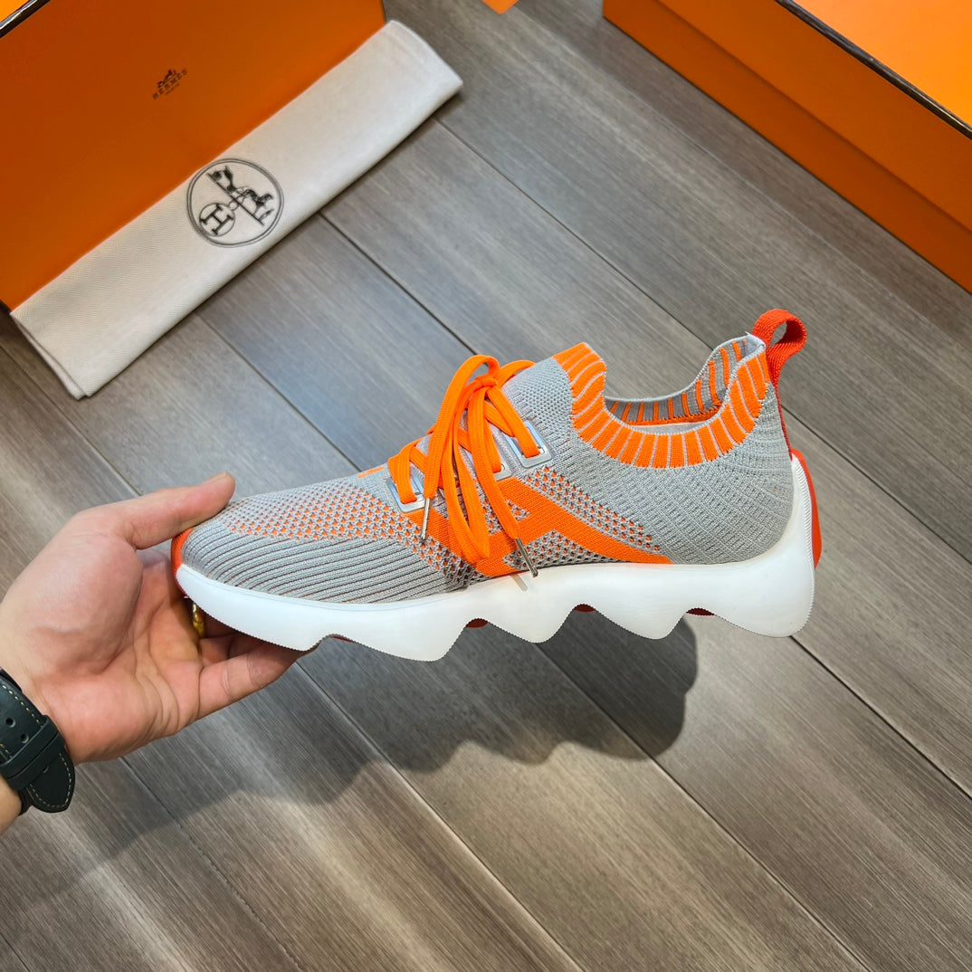LV SNEAKERS IN GREY MIX WHITE MIX ORANGE CALFSKIN AND FABRIC BREATHABLE