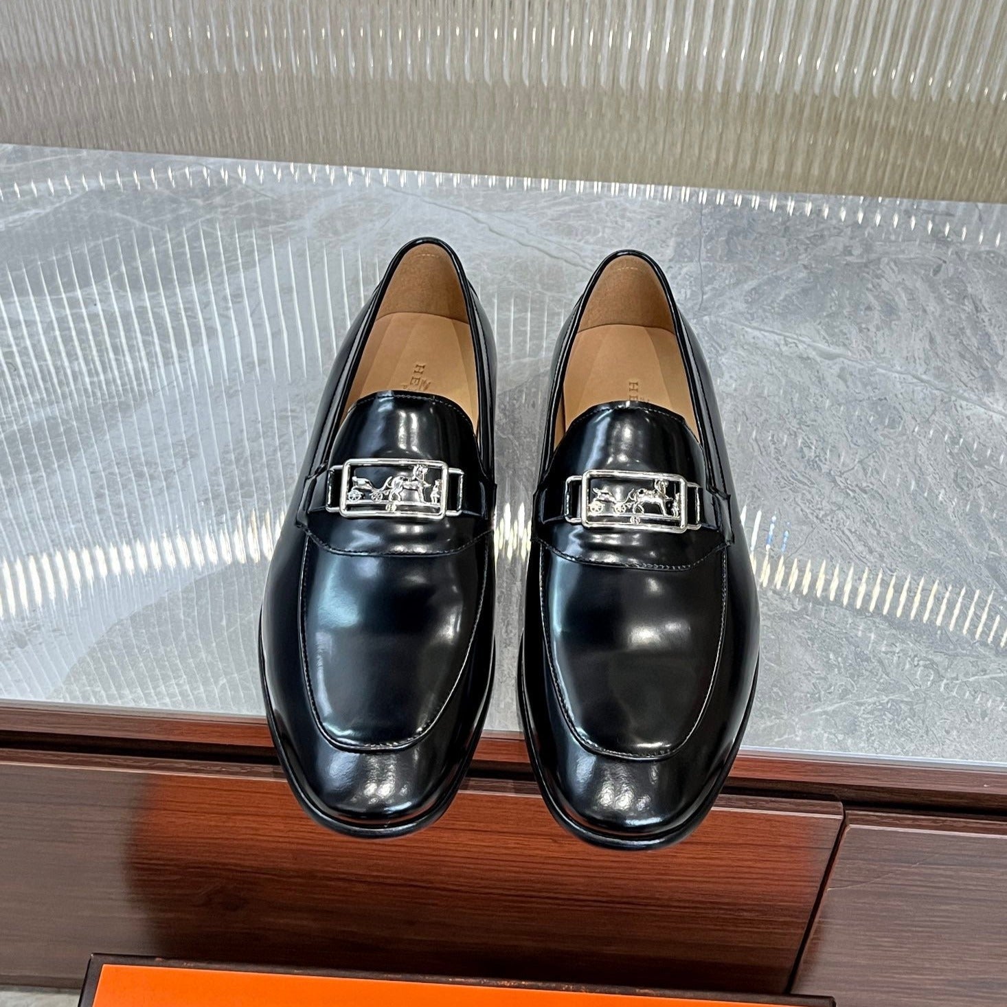 HM H-BUCKLE LOAFER GLOSSY BLACK CALFSKIN