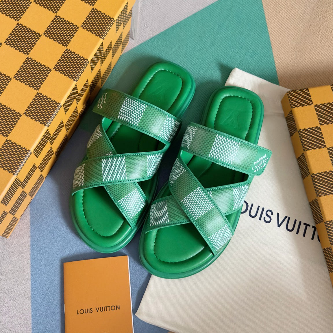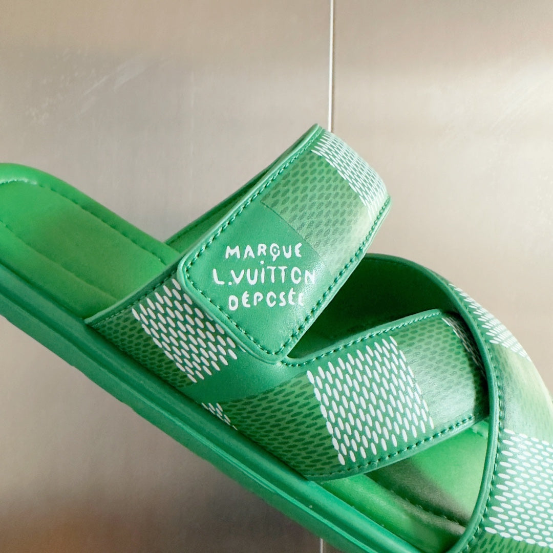 LV VENICE MULE SLIPPERS KELLY GREEN DAMIER