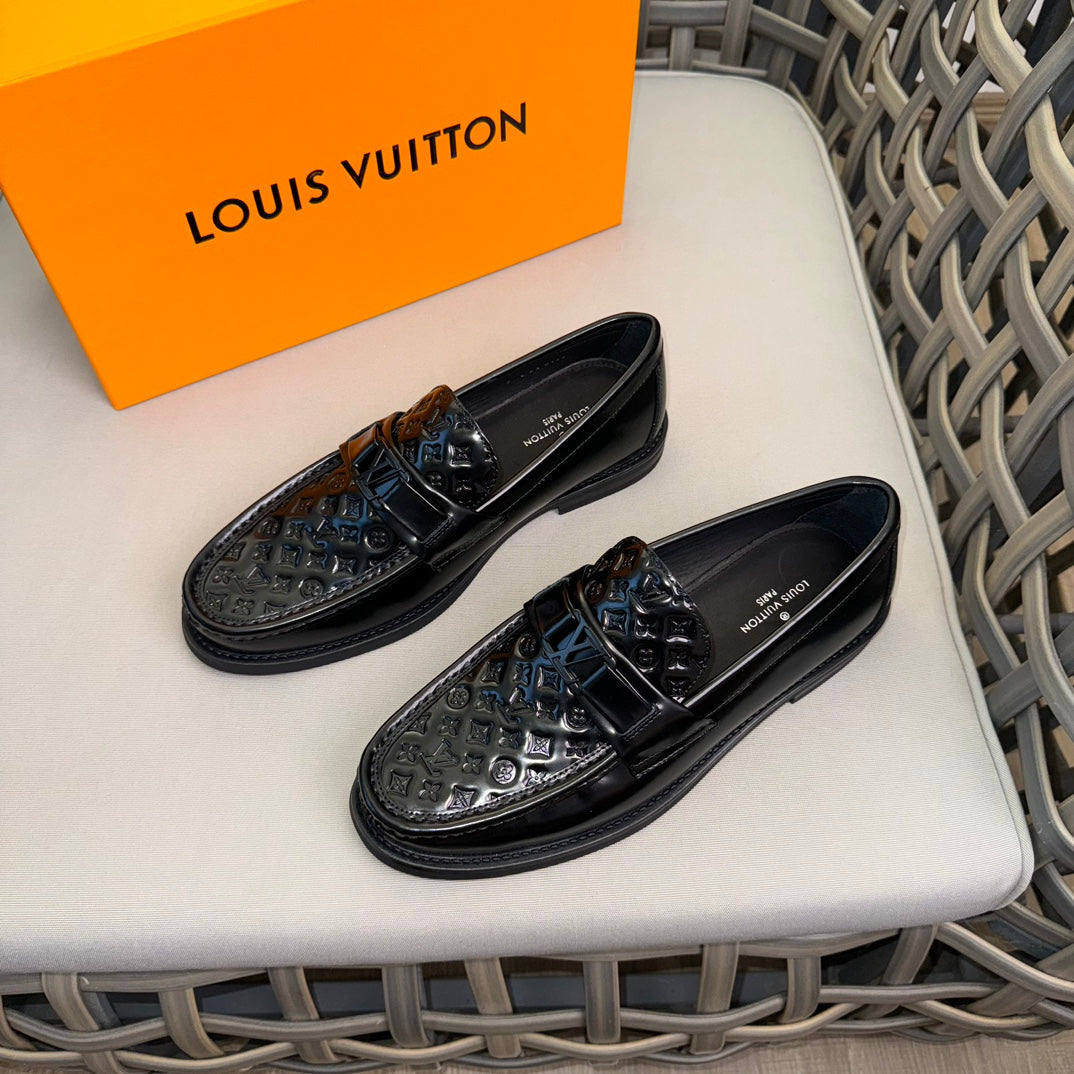 LV LOAFERS IN BLACK CALFSKIN WITH BRANDED EMBOSSING