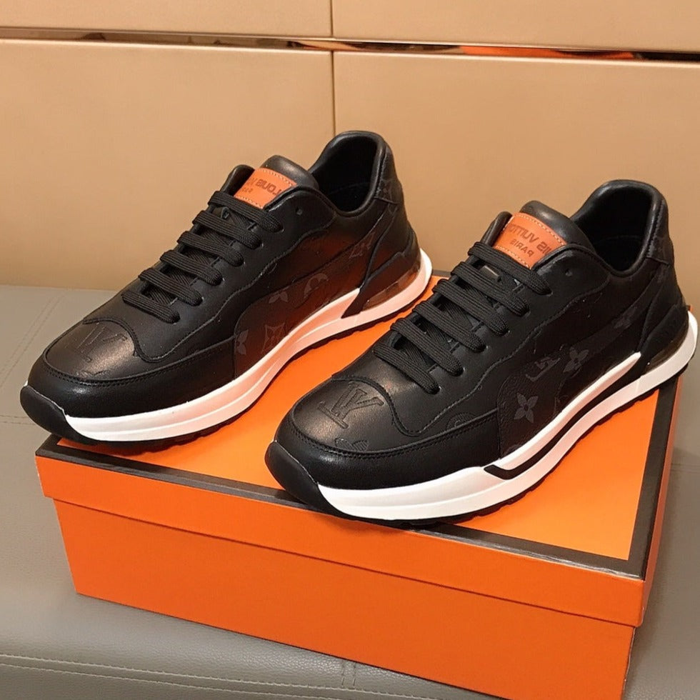 LV SNEAKERS IN BLACK CALFSKIN AND BRANDED PRINTED FABRIC