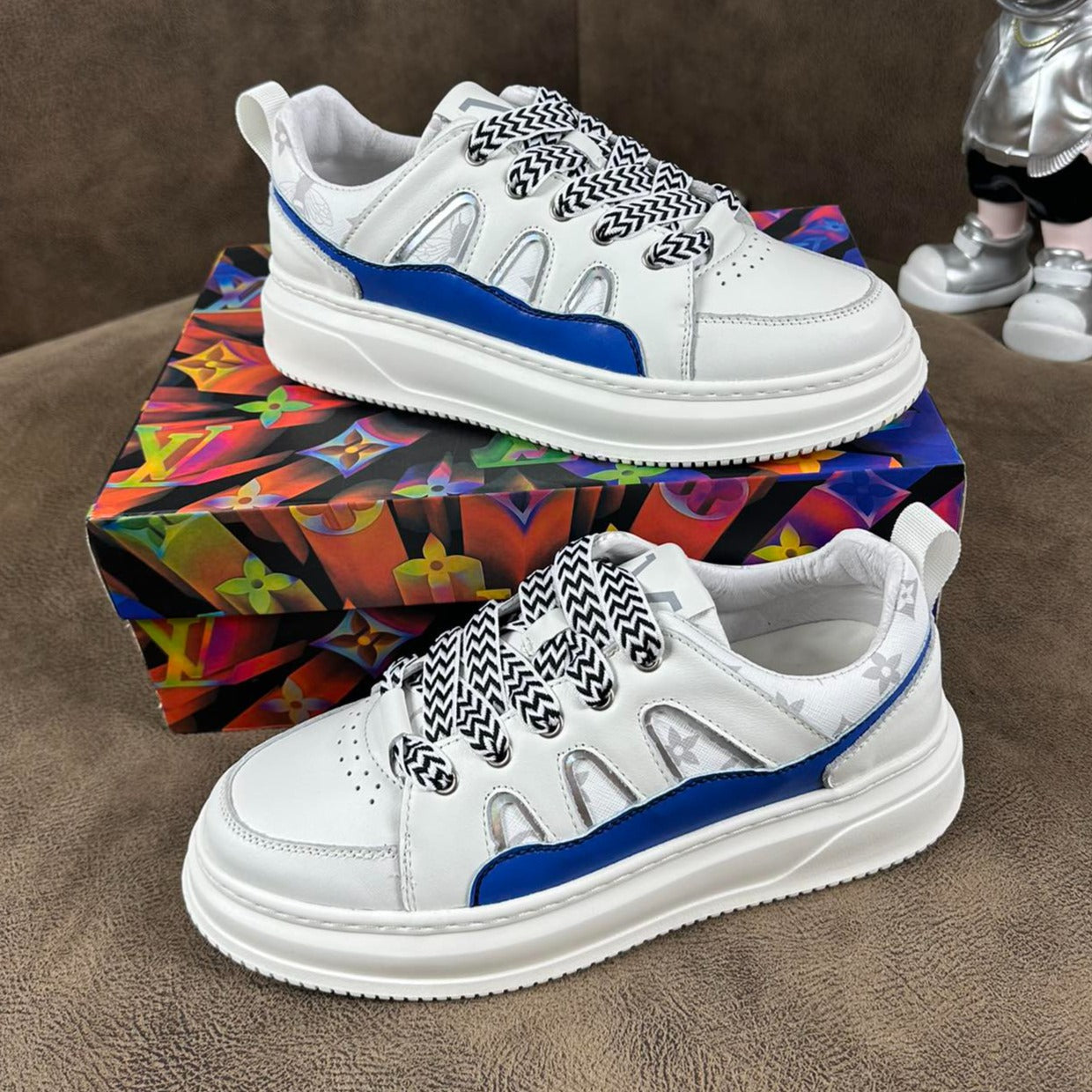 LV TRAINER SHOES IN WHITE MIX BLUE CALFSKIN