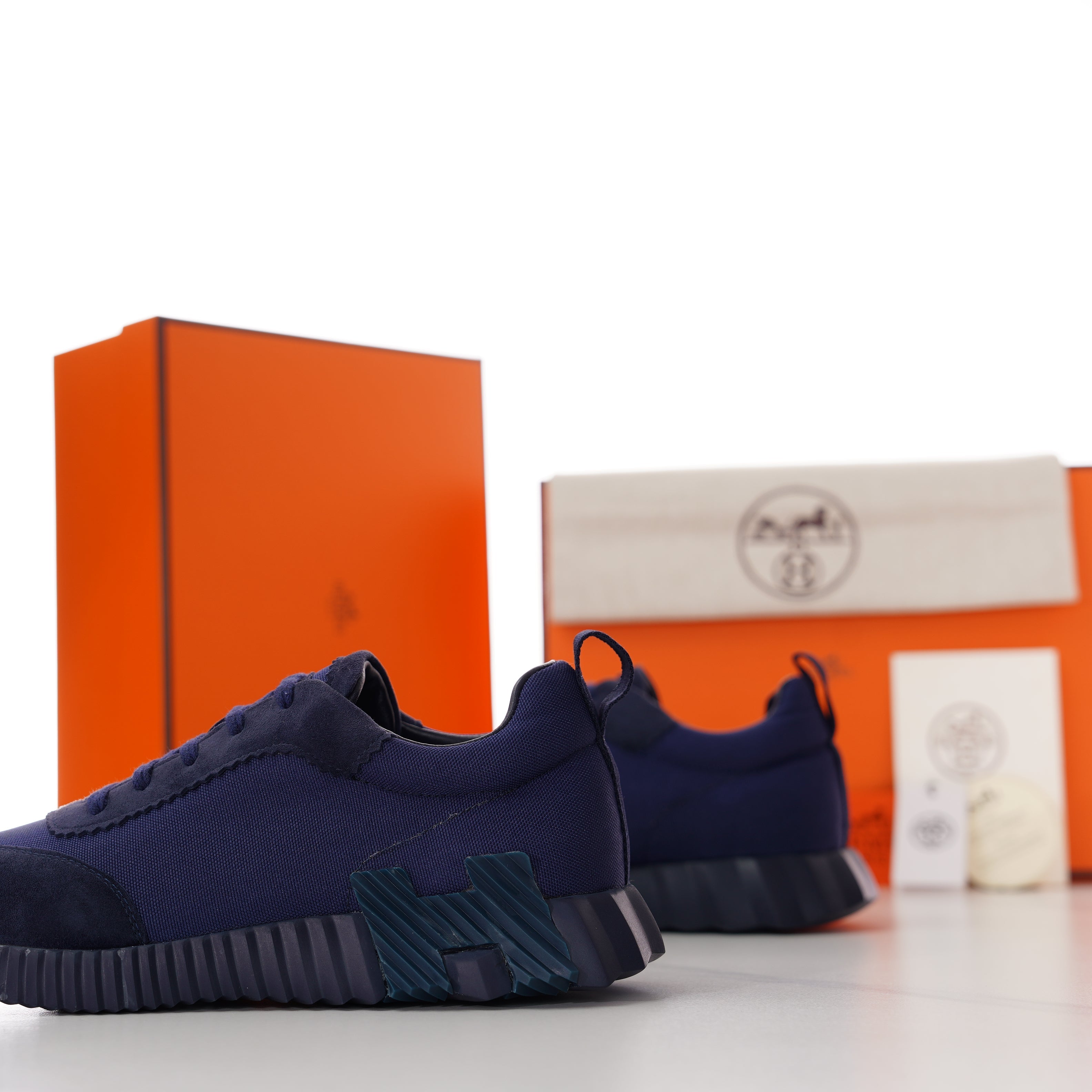 HM Men's Bouncing Sneaker Navy Blue Calfskin Suede 696024