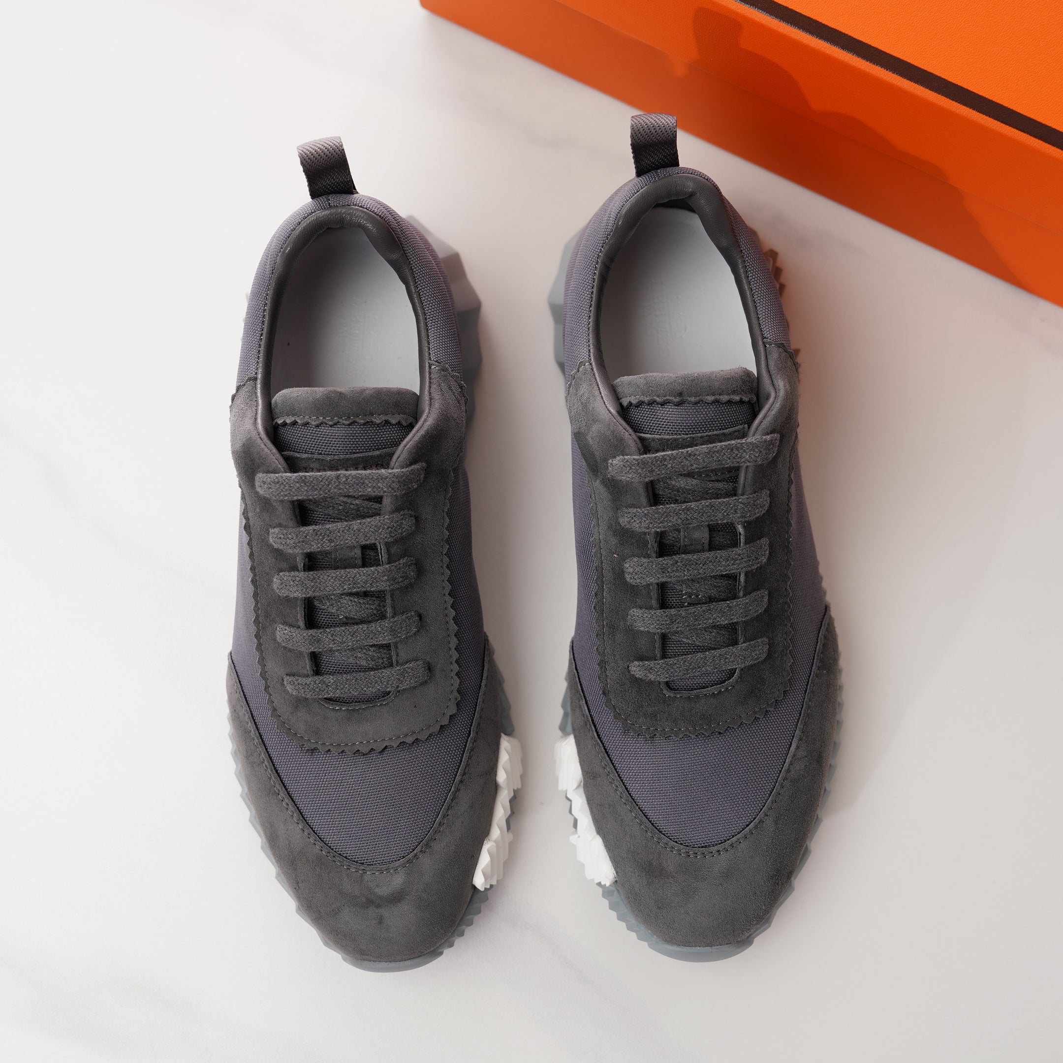 HM Men's Bouncing Sneaker Neutral Grey Fabric Suede 688612