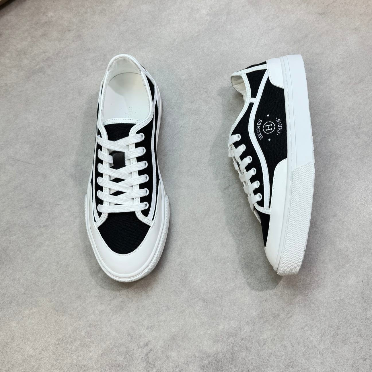 HM Men's Bouncing Sneaker White Black Calfskin Suede 696022