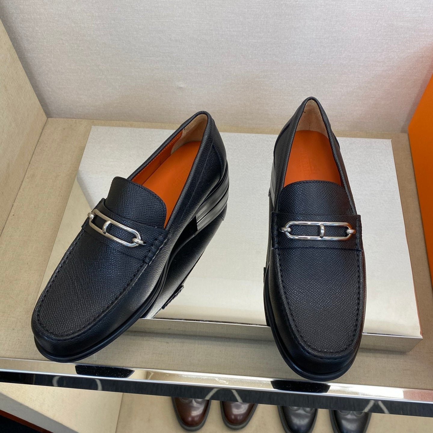 HM Men's Alessandro Loafer Black Orange Embossed Cowhide 697693