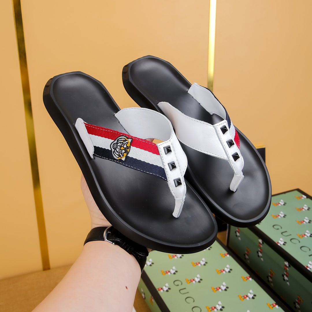 GG Men's Web Slide Beige Canvas Cowhide 595537