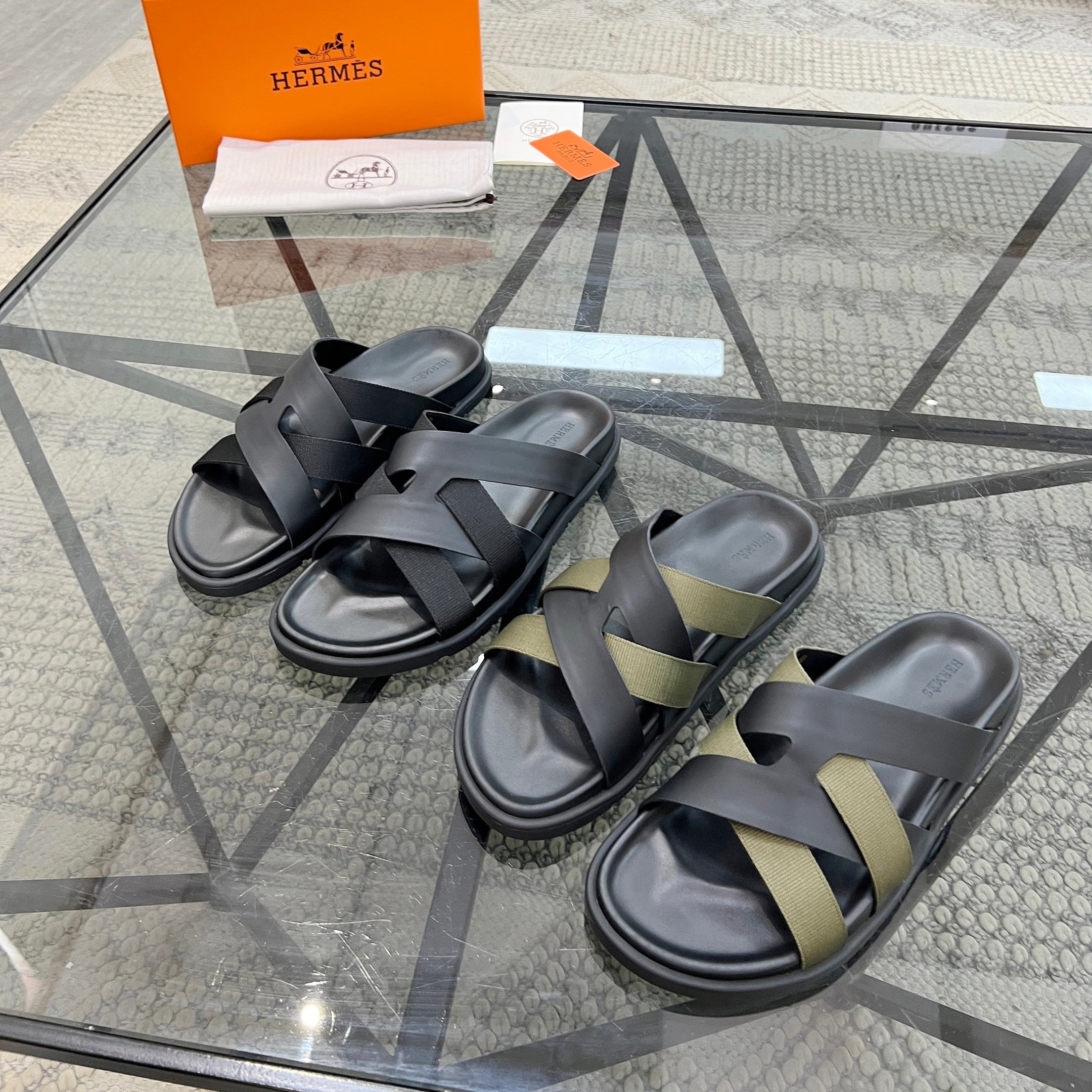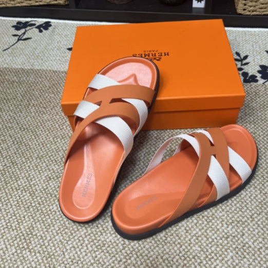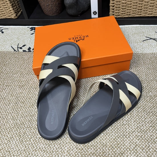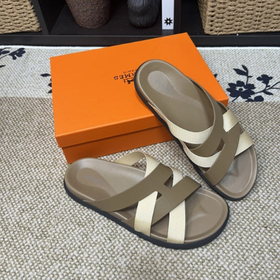 HM Men's Cross Strap Slide Beige Cowhide 544097