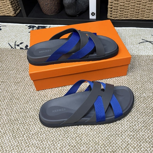 HM Men's Chypre Slide Brown Blue Cowhide 542932