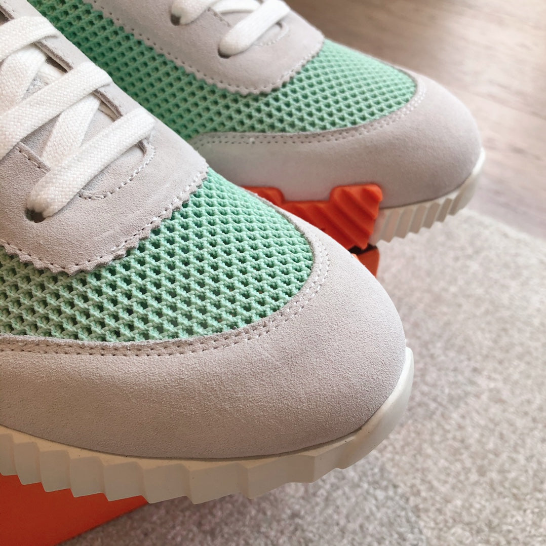 HM Men's Sneaker White Green Mesh Calfskin 541263