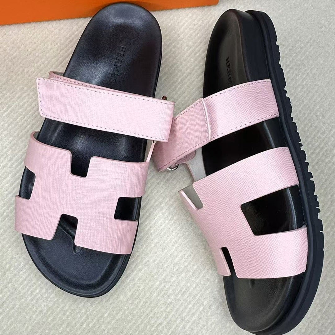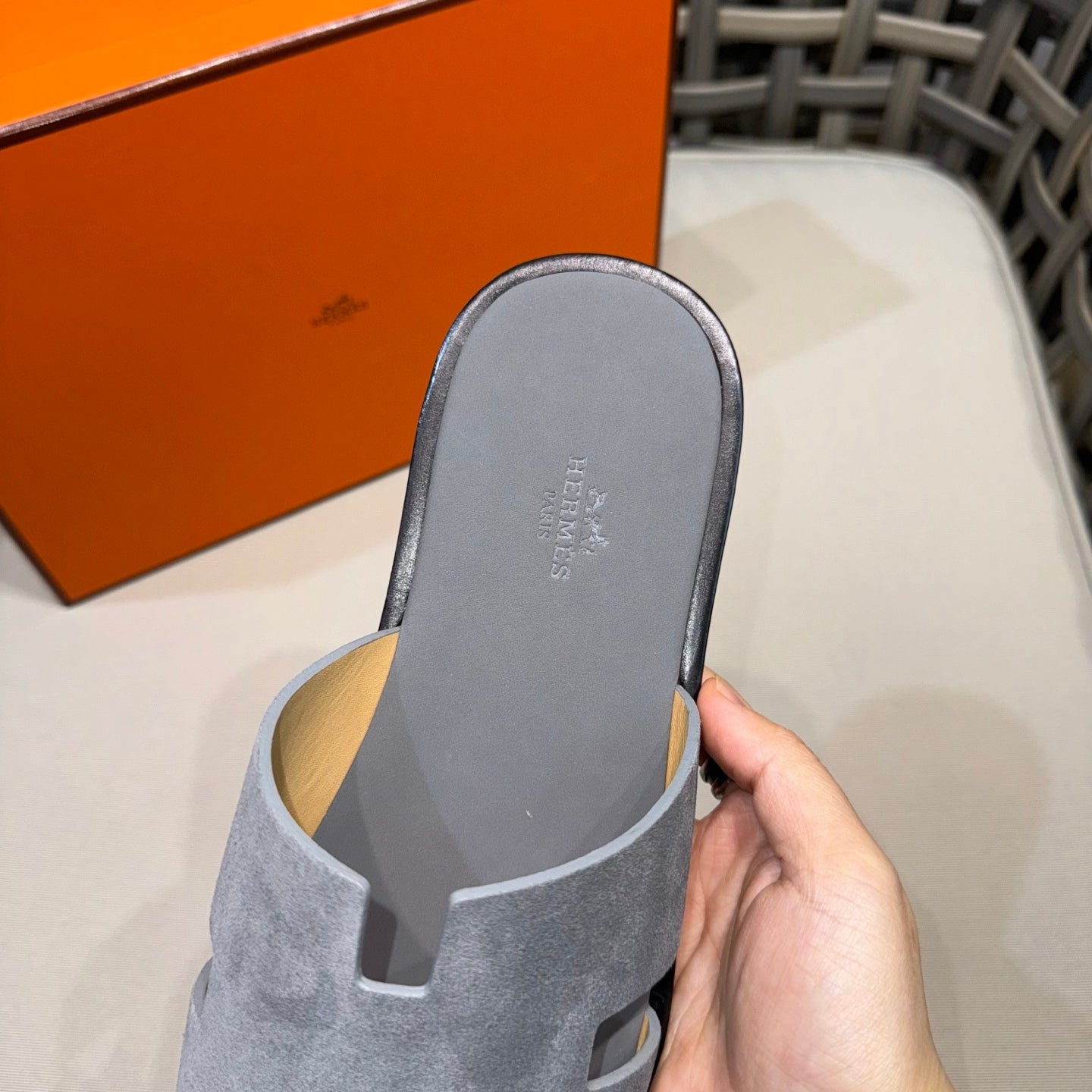 HM Men's Chypre Slide Black Grey Cowhide 540211