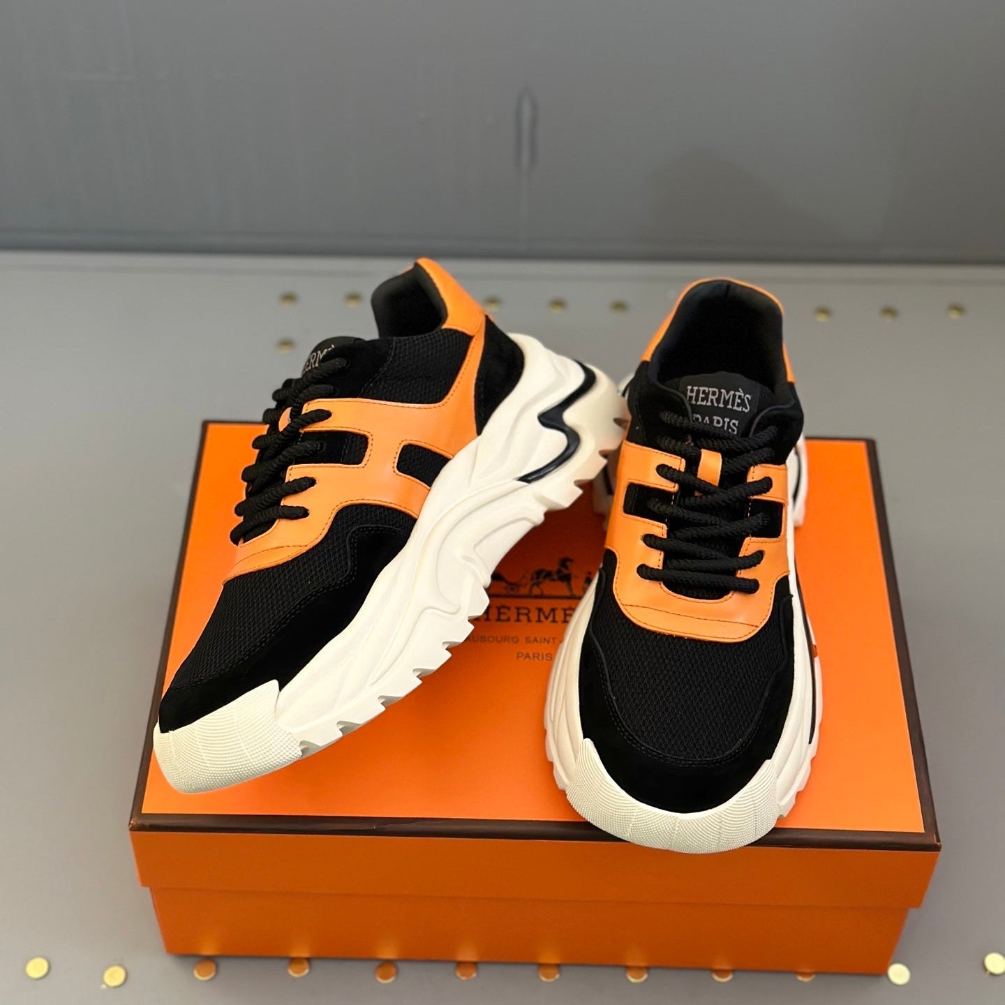 HM Men's Sneaker Black Orange Mesh Calfskin 541264