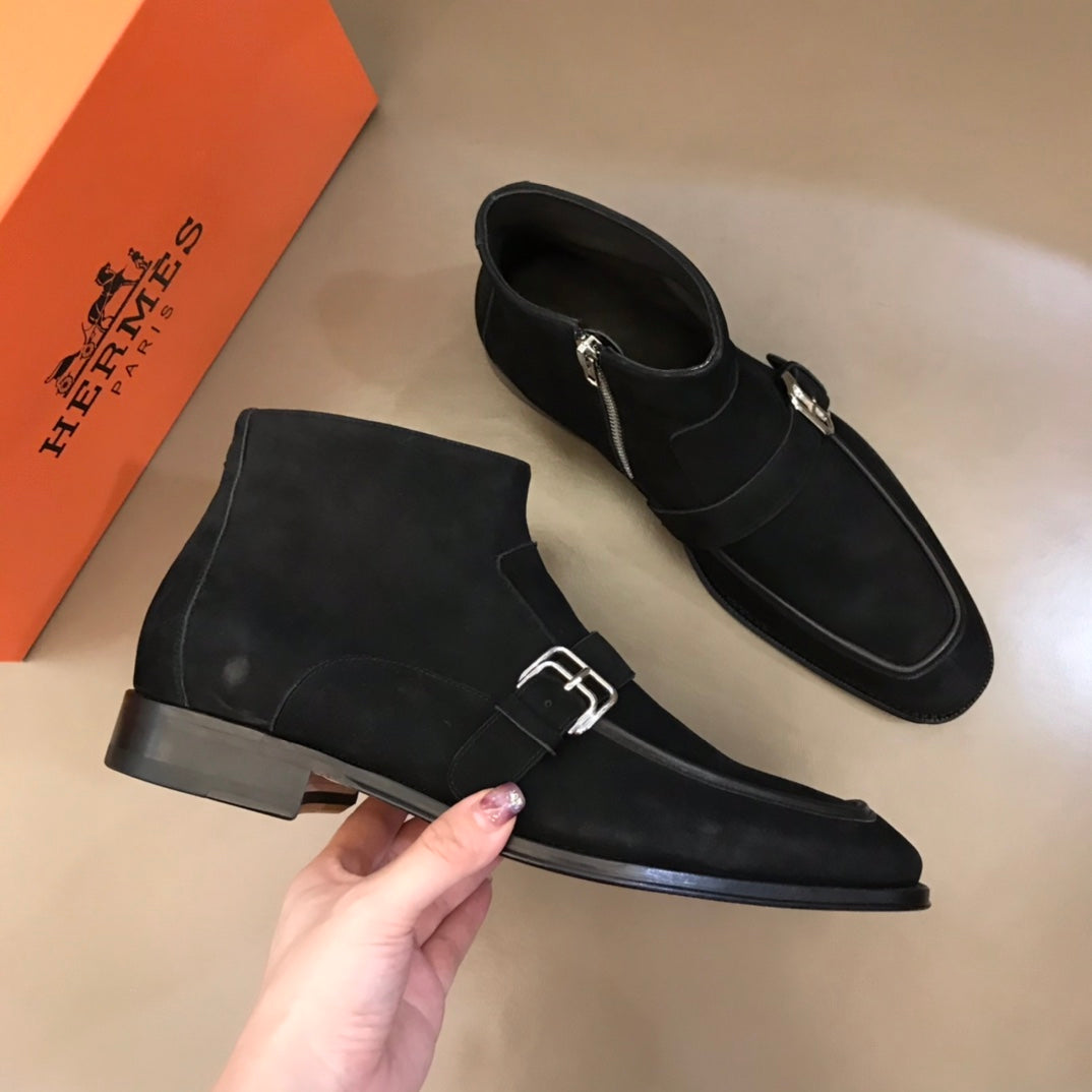 HM Men's Monk Boot Black Suede 527896