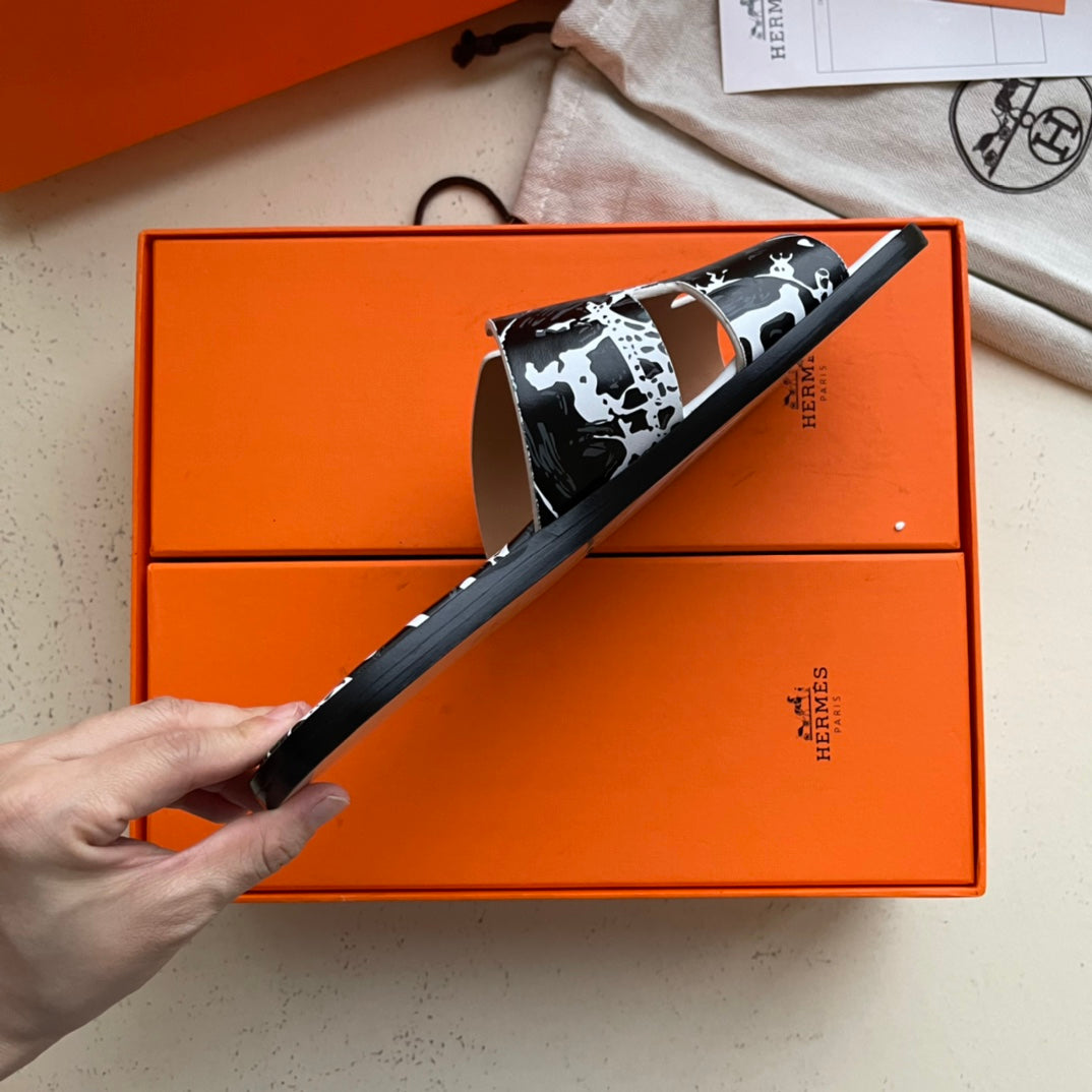 HM Men's Chypre Slide Black Calfskin 538596