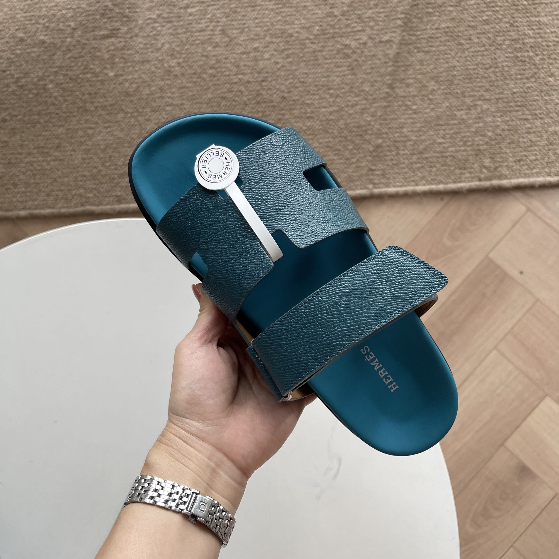 HM Men's Chypre Slide White Epsom Calfskin 538612