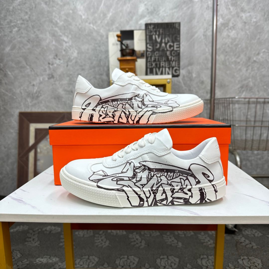 HM Men's 25 Sneaker White Black Cowhide 465307